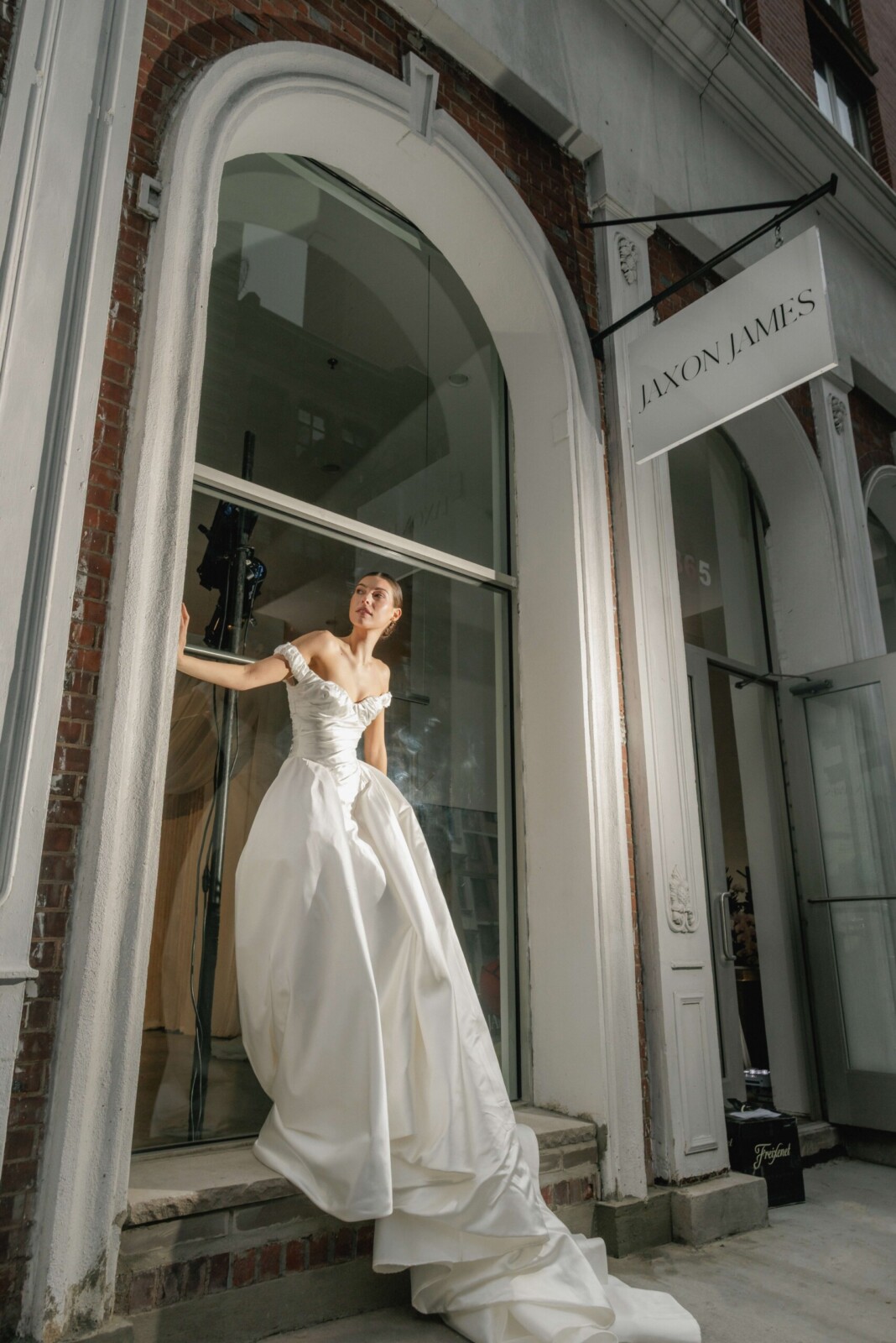 Pallas Couture unveiled its "Maison La Rose '26" collection during October 2025 New York Bridal Fashion Week (NYBFW), featuring sculptural, modern couture gowns in collaboration with Jaxon James Couture Bridal. The collection showcases intricate craftsmanship, including the "HEIRESS" gown with its structured, romantic design, and is marked by a focus on high-fashion, detailed bridalwear.