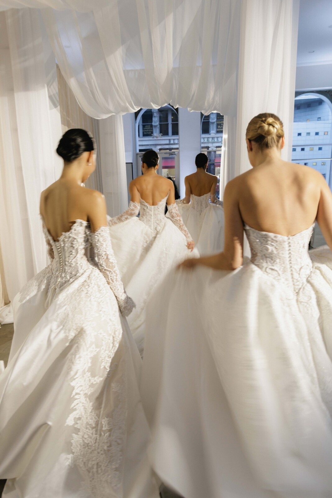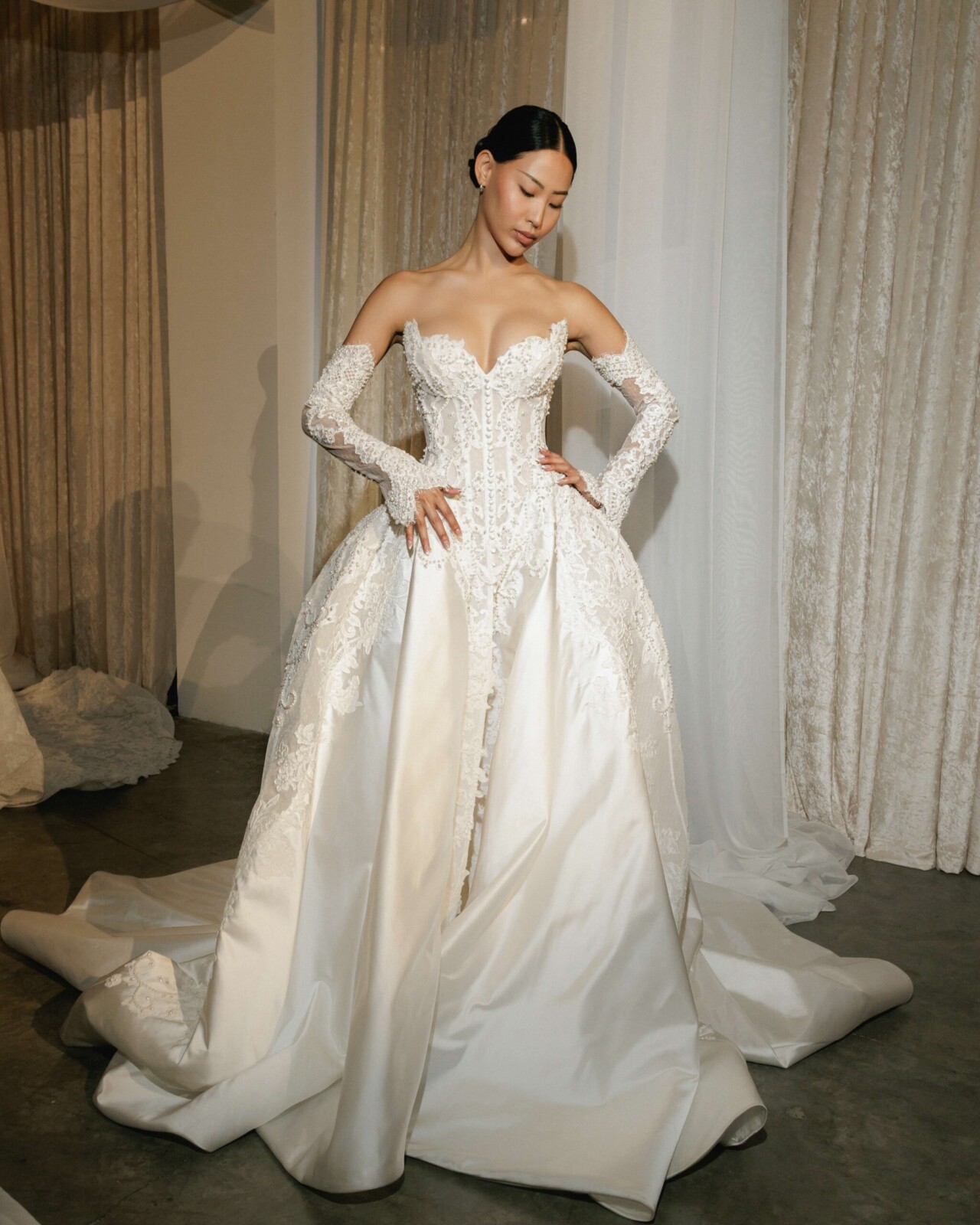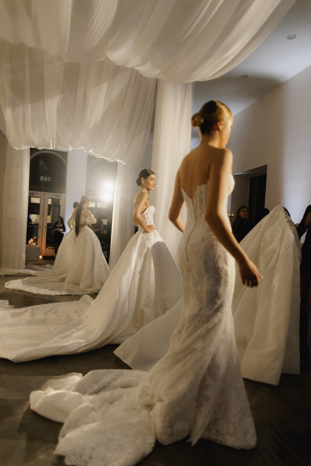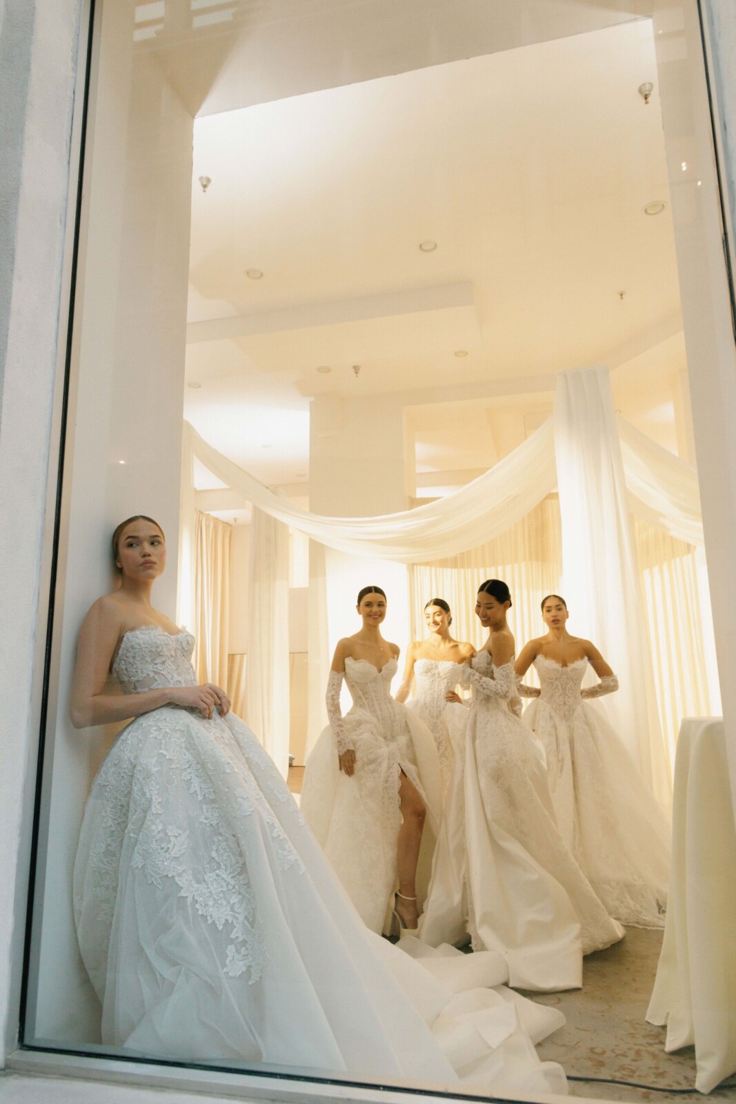 The collection is currently on a worldwide trunk show tour for 2026, targeting brides looking for contemporary, high-end bridal designs.