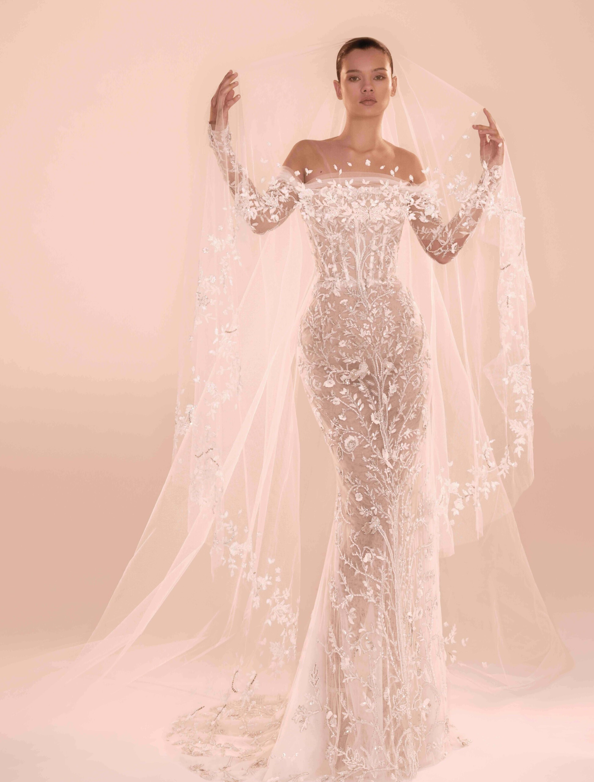 For the Spring 2023 season, the ZUHAIR MURAD bride consecrates the nuptials of fantasy and reality drawn from the cosmos. Her eyes closed, she envisions her gown with a thousand reflections. A sundry of images scroll past… A billowing magical spectacle unfolds before her: Ethereal enchantments of crystals speckled on skirts of interminable lengths, sensual