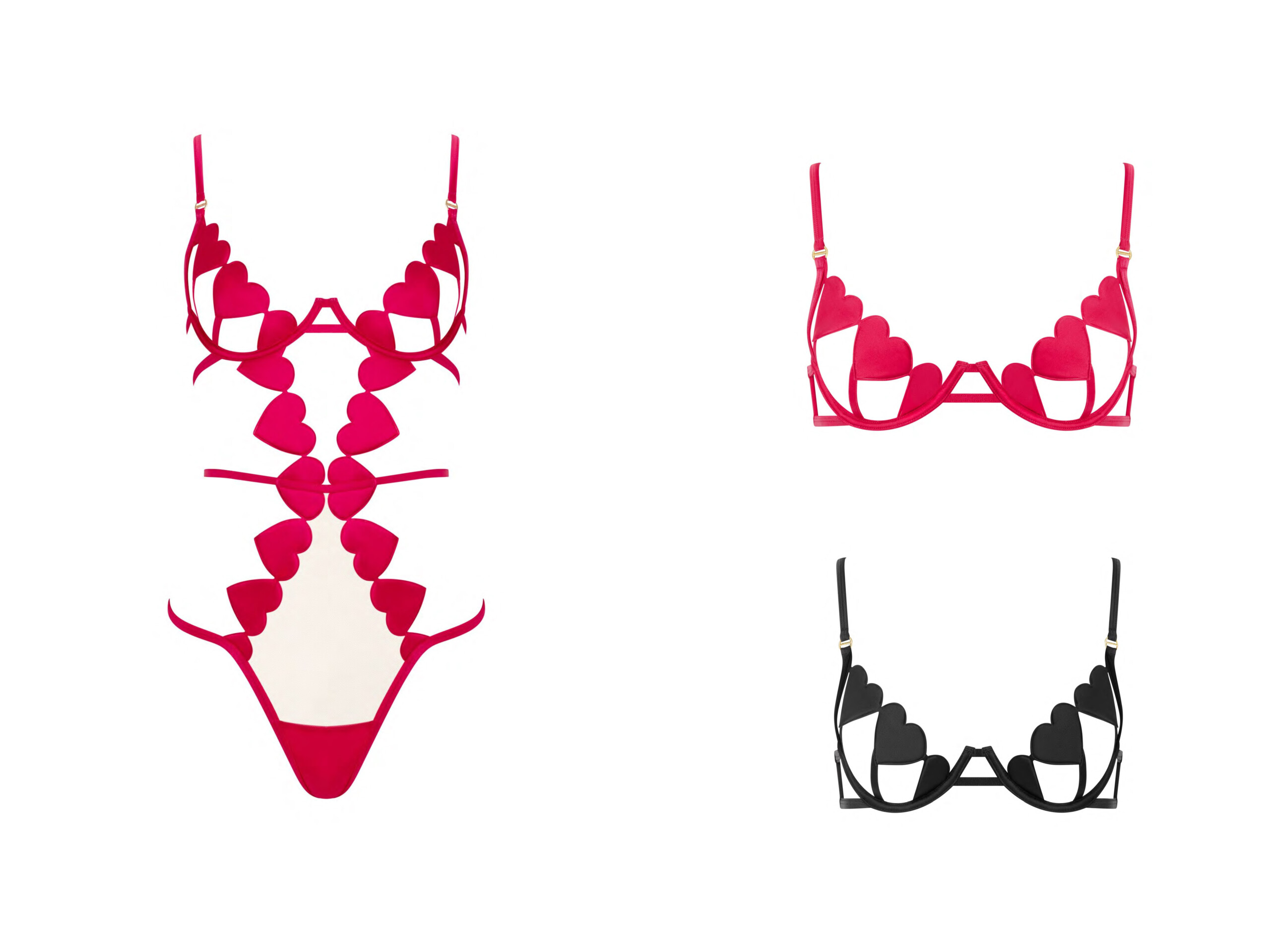 Annabel Red Teddy; Annabel Open-Back Red Brief; Annabel Wired Red Bra
