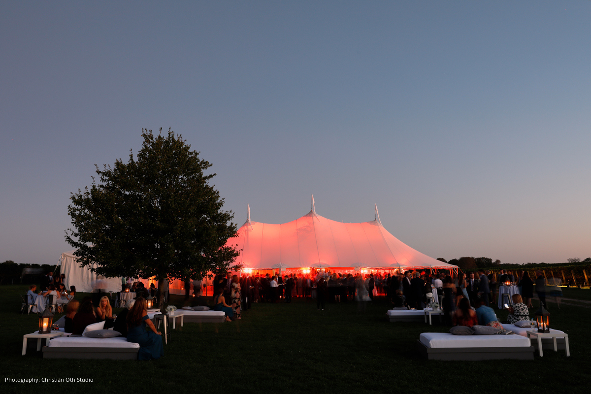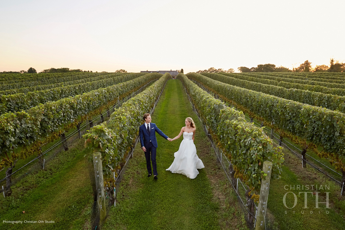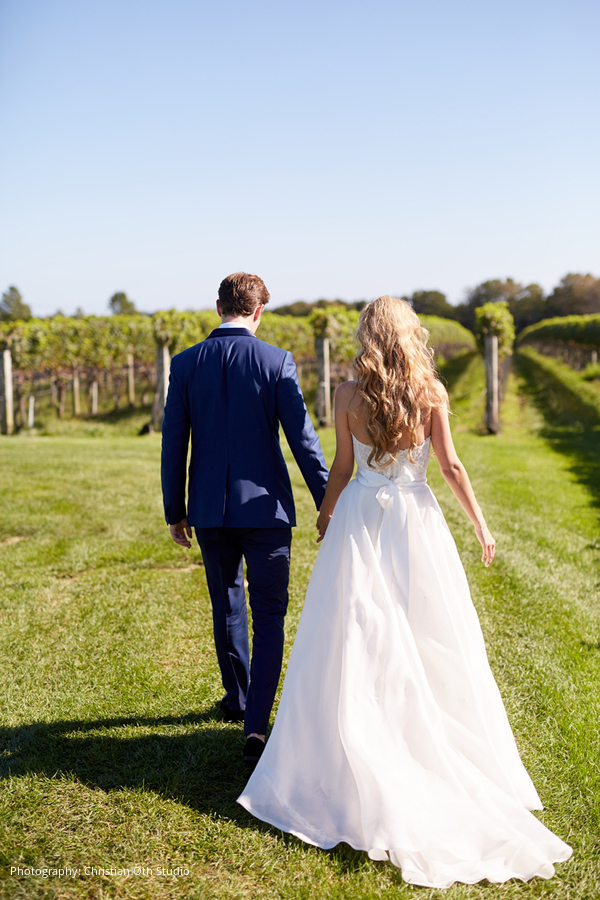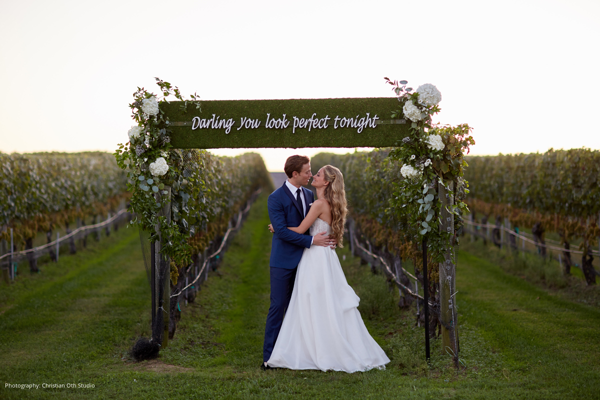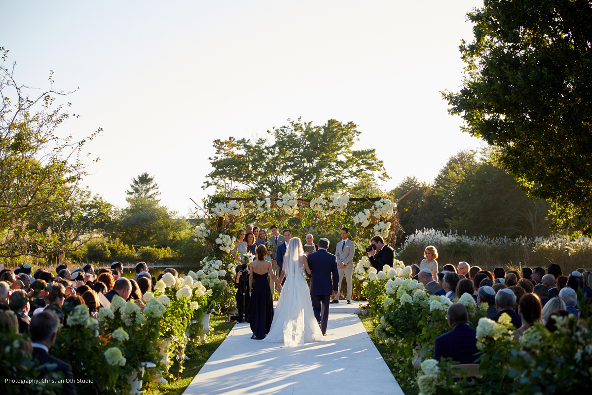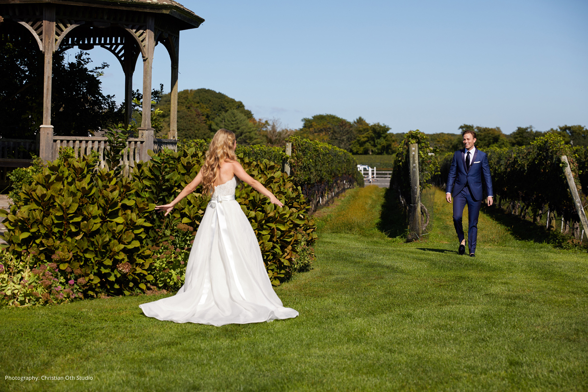 After getting engaged two years later, plans were in the works for a wedding at Wolffer Estate Vineyard in Sagaponack, New York. “Since we re-met out east, we felt strongly about getting married there,” Kylie explains. “Wolffer is our favorite place to go, and the fact that we were able to get married there was literally a dream come true.”