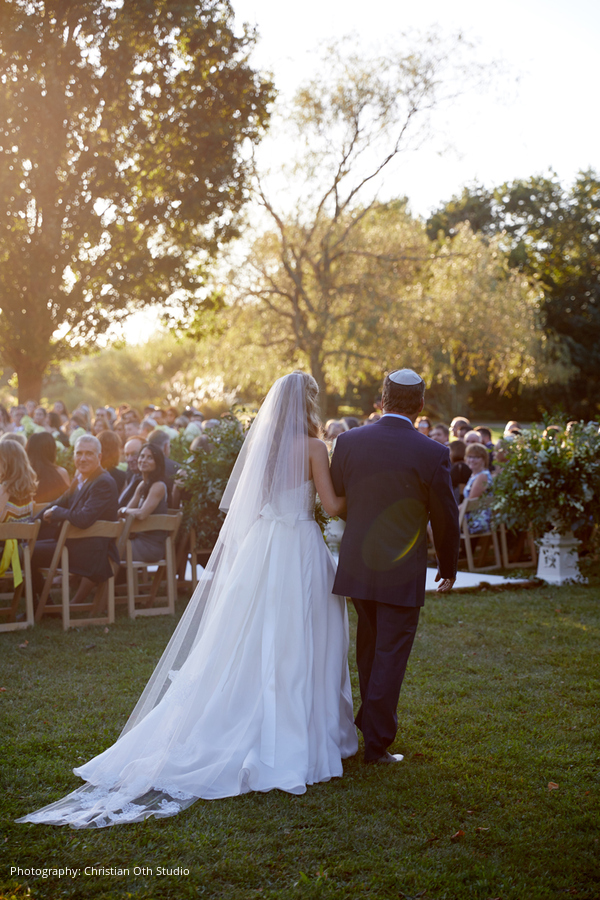 When shopping for the perfect dress, the bride-to-be chose a Monique Lhuillier gown, complemented by bridal accessories with a special meaning behind them. “My most important accessories were my necklace and my wedding band,” she shares. “My grandmother passed away very unexpectedly almost ten years ago, and when I got engaged my grandpa gave me the stone from her engagement ring to make into a necklace that I could wear on my wedding day. My grandpa doesn’t wear his band anymore, so he gave it to me to size down and wear as my own.”