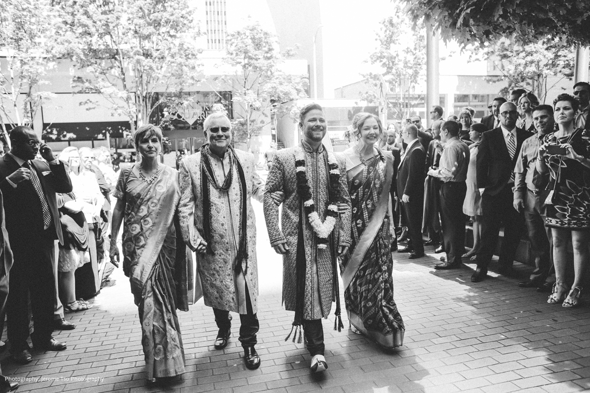 Priya from Premini Events took the lead during the wedding planning process, saving the couple a great deal of time, energy, and stress during their pre-wedding experience. This led to a traditional South Indian Hindu wedding ceremony, which is typically performed in Sanskrit. Wanting the audience to be able to follow along, the bride and groom created custom booklets that explained each step of the ceremony. They also included a tradition from Danny’s family – reciting vows they had written to each other.