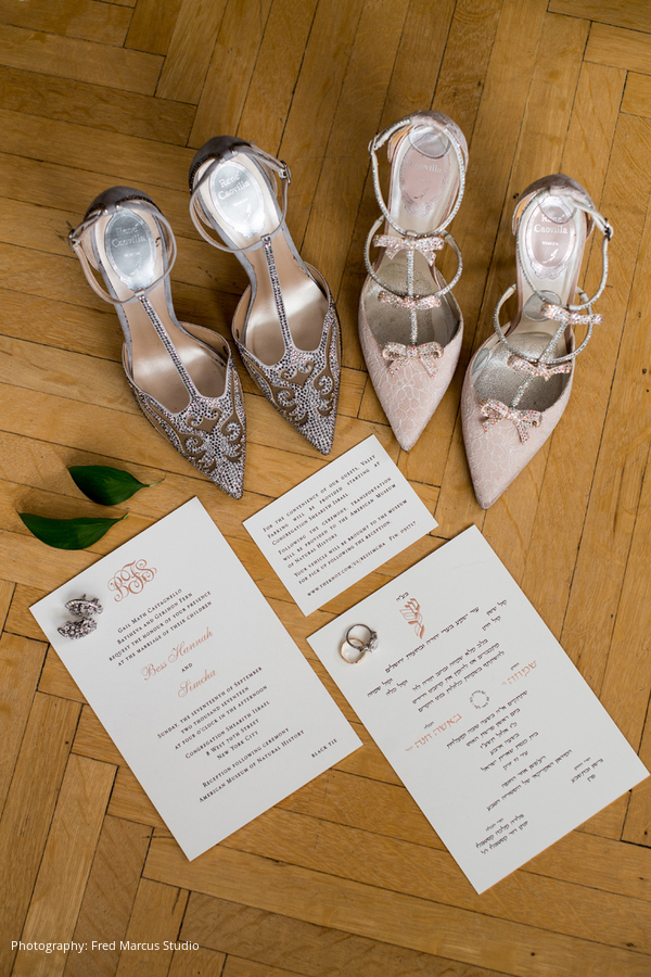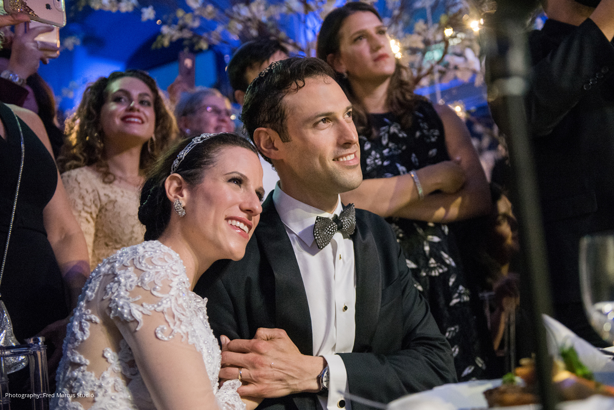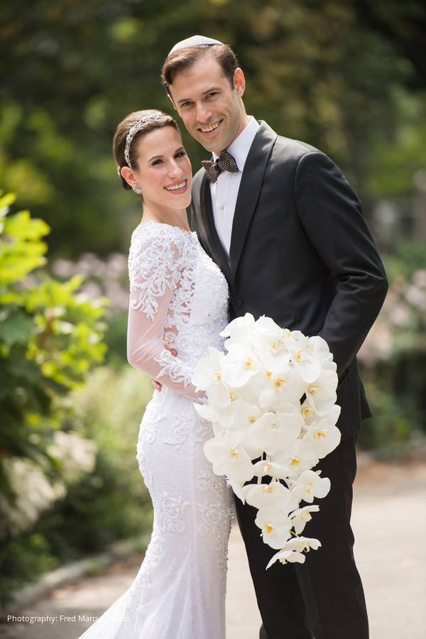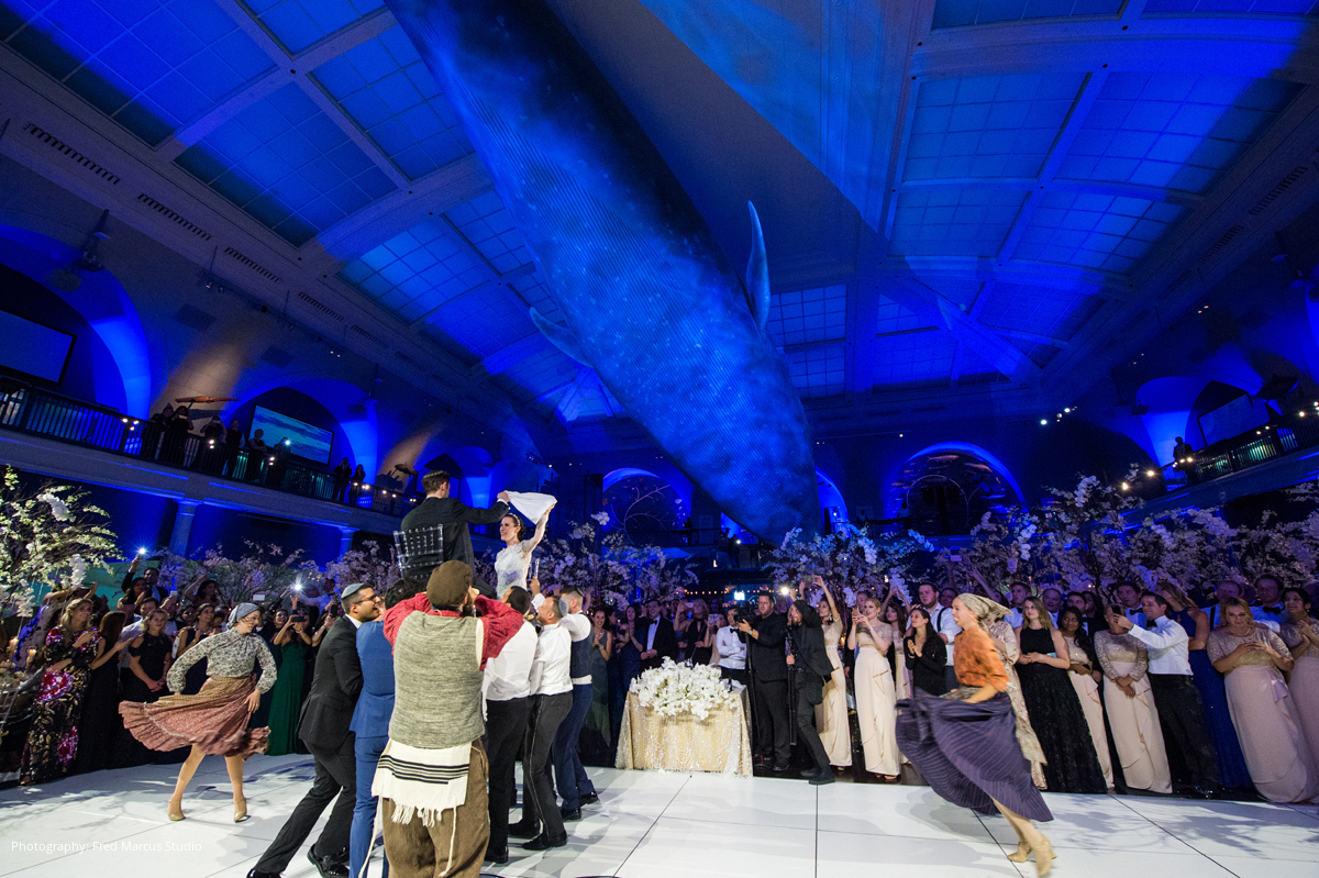 Photography: Fred Marcus Studio, New York, NY; Ceremony Location: The Spanish and Portuguese Synagogue, New York, NY; Reception Location: American Museum of Natural History, New York, NY; Event Design and Planner: Barbara Esses Design, New York, NY; Floral Design: Atlas Floral Decorators, New York, NY; Wedding Dress: Pnina Tornai; Bridal Salon: Kleinfeld, New York, NY; Groom's Attire: Salvatore Ferragamo; Entertainment: Sunny Spot Productions, New York, NY