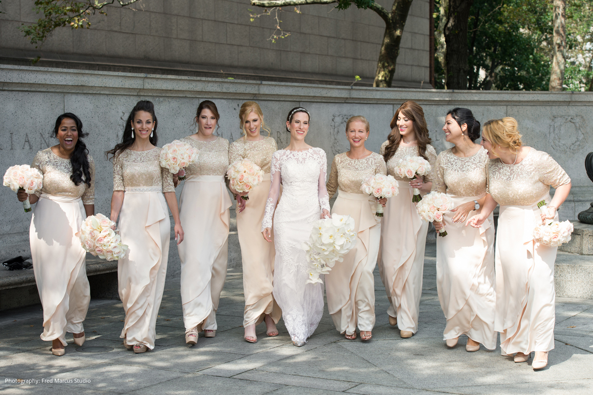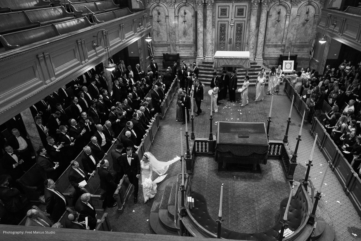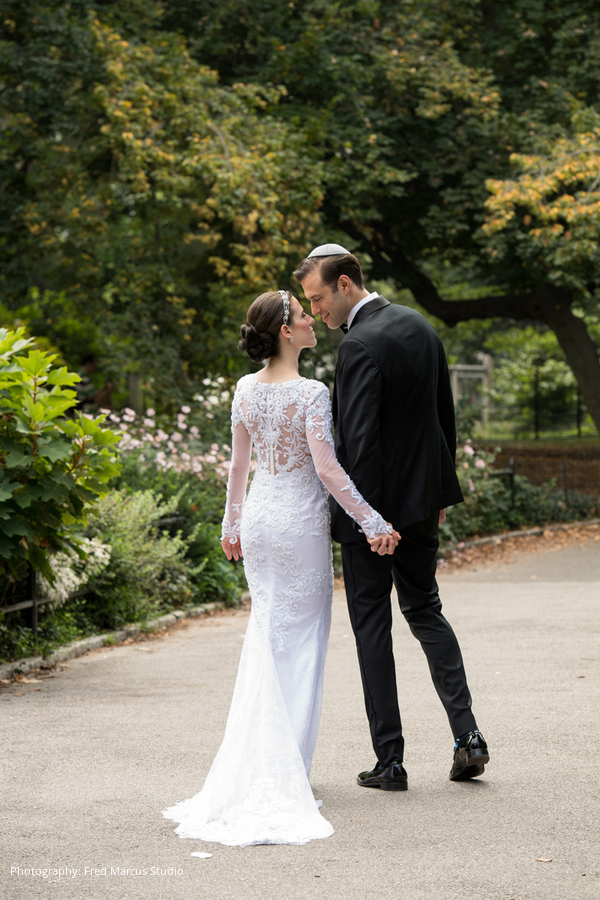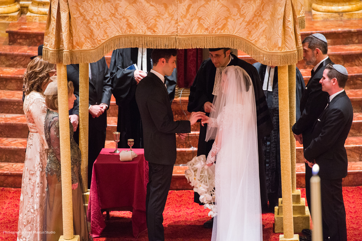 Sim and Bess were married days before the Jewish new year, so they could begin the year together as husband and wife. A traditional Orthodox Jewish ceremony was held at the Spanish and Portuguese Synagogue located on Central Park West, right around the corner from the bride’s childhood home. Surrounded by incredible architecture and walking down a red carpet to the chuppah, the bride and groom felt like royalty as a live chorus sang from the balcony overlooking the guests.