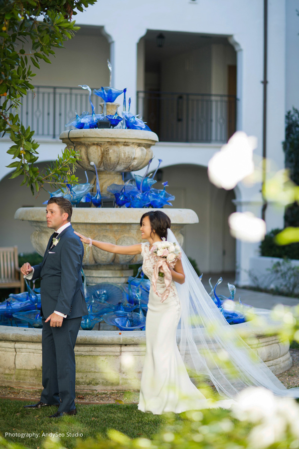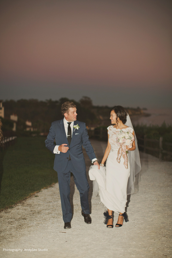 Genie and Kiernan envisioned an understated, yet elegant wedding with natural and rustic touches. The wedding planning process was aided by planner, Grace Song, and Bacara Resort was chosen as the wedding venue – its ocean views and Spanish architecture perfectly showed off the natural beauty of the California coast.