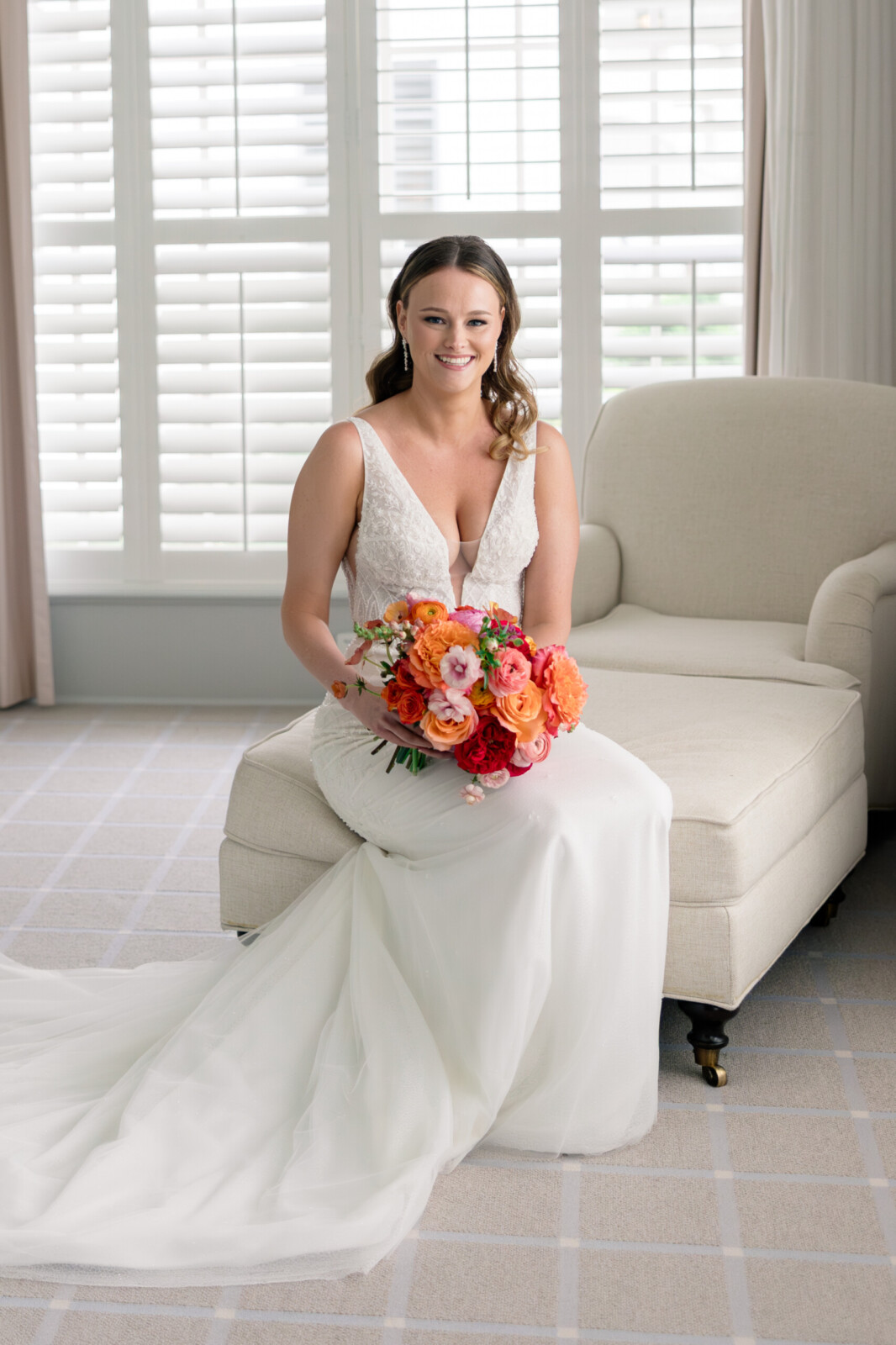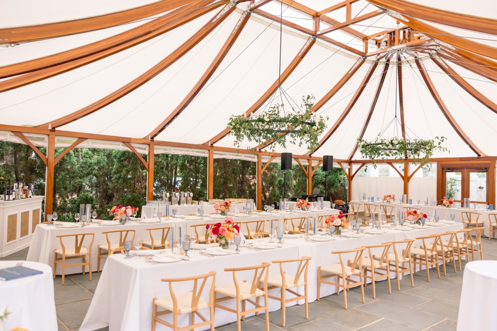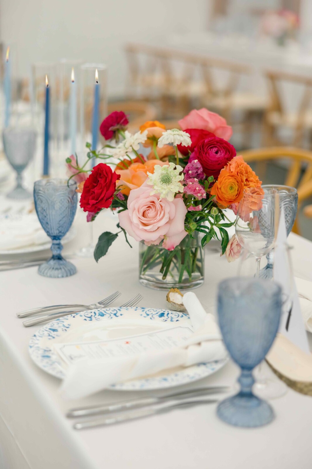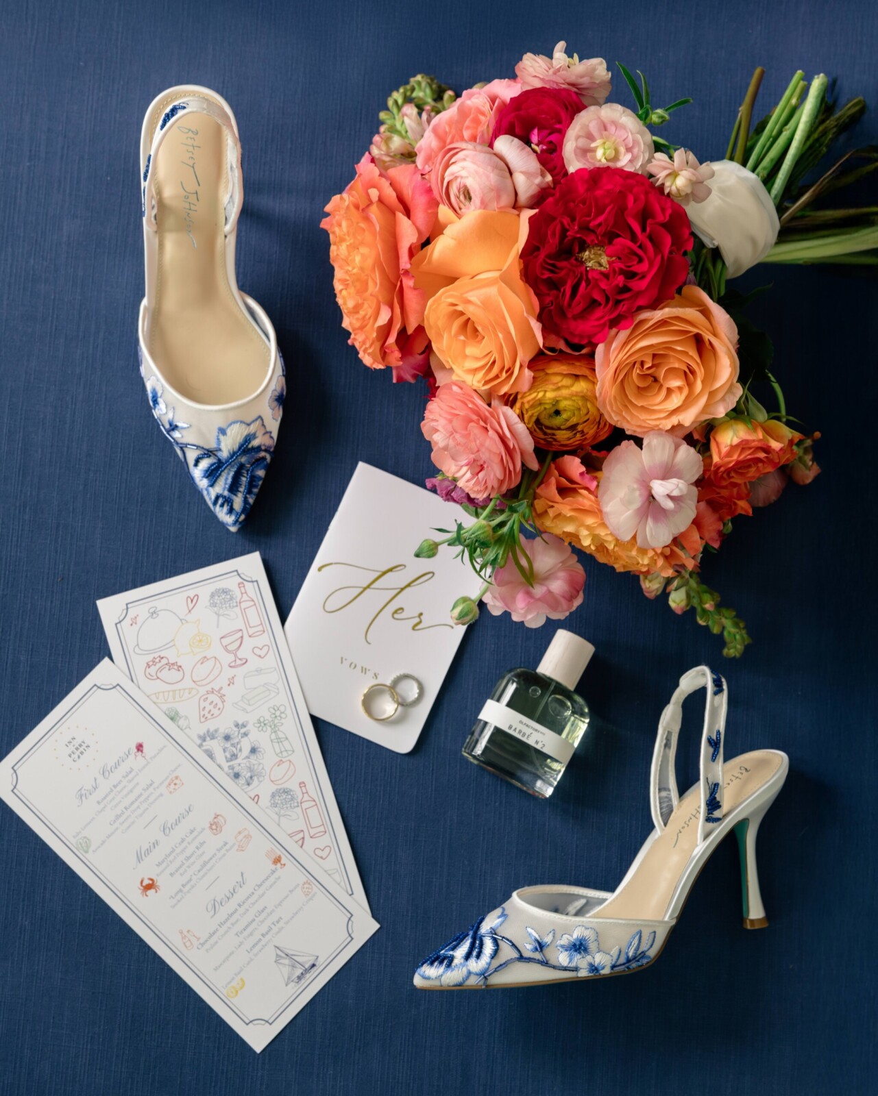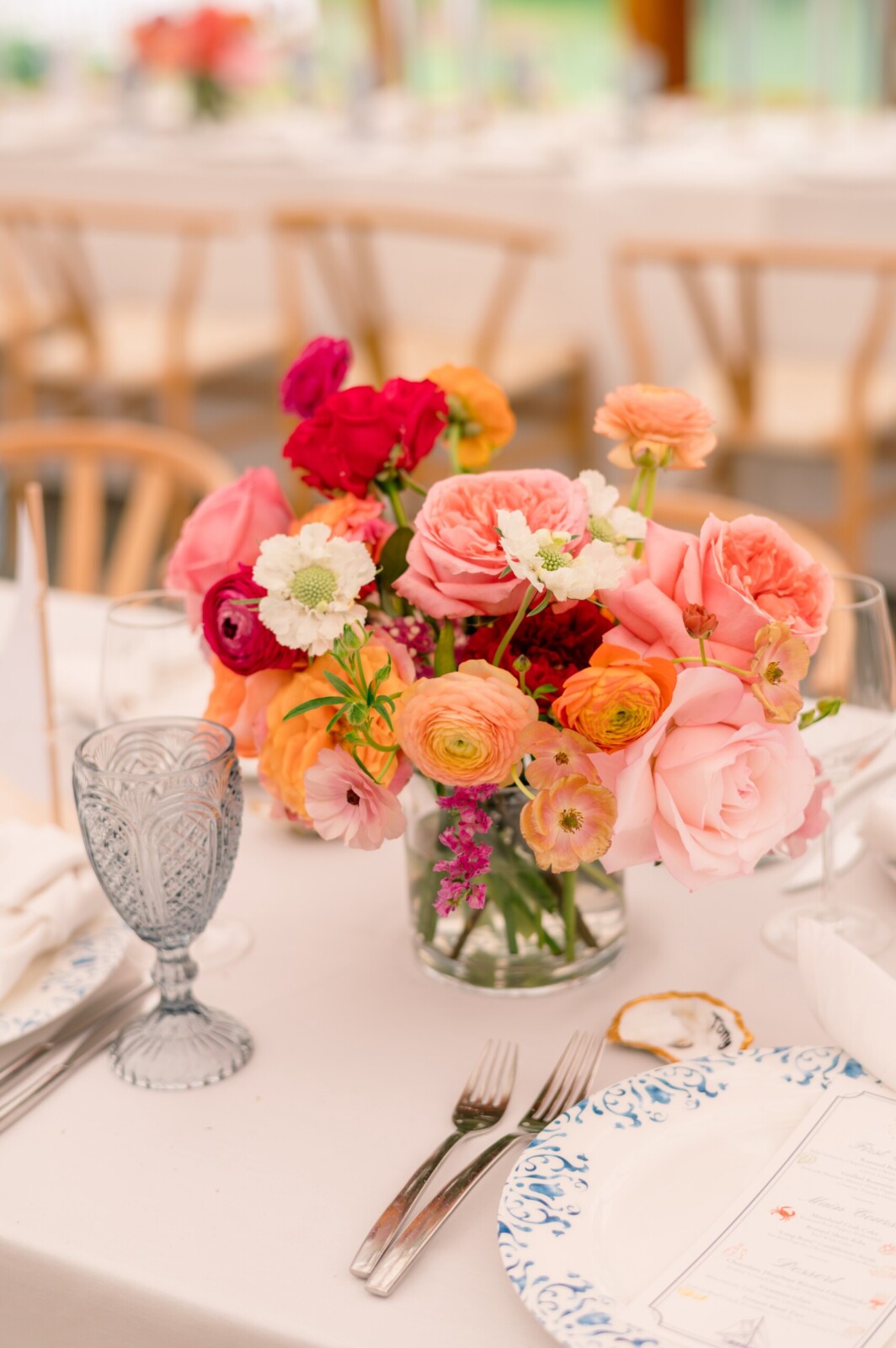 To orchestrate their vision, the couple partnered with Elizabeth Giles Events, whose refined aesthetic and meticulous attention to detail proved instrumental in bringing their "Sunset on the Shore" theme to life. The design married coastal heritage with contemporary elegance: local oysters and classic maritime blues provided a sophisticated foundation, while sunset-inspired florals added vibrant touches that reflected the couple's spirited personalities.