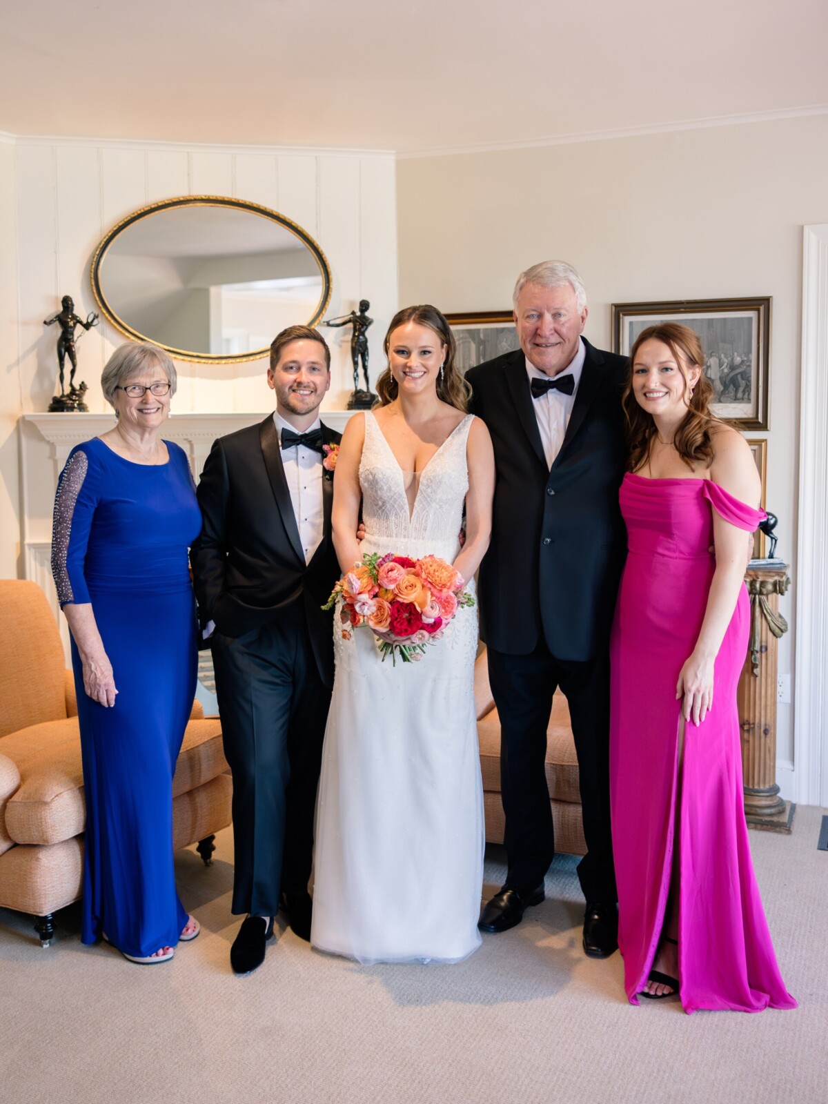 On the morning of the wedding, Alexis and Thad were surrounded by sixty of their closest family members and friends. The scale was intentionally intimate, creating space for laughter, connection, and the kind of quiet moments couples can often miss in the whirlwind of a larger event. Alexis carried a bouquet wrapped with her parents’ class rings — a subtle but powerful reminder of the legacy that had shaped her own.