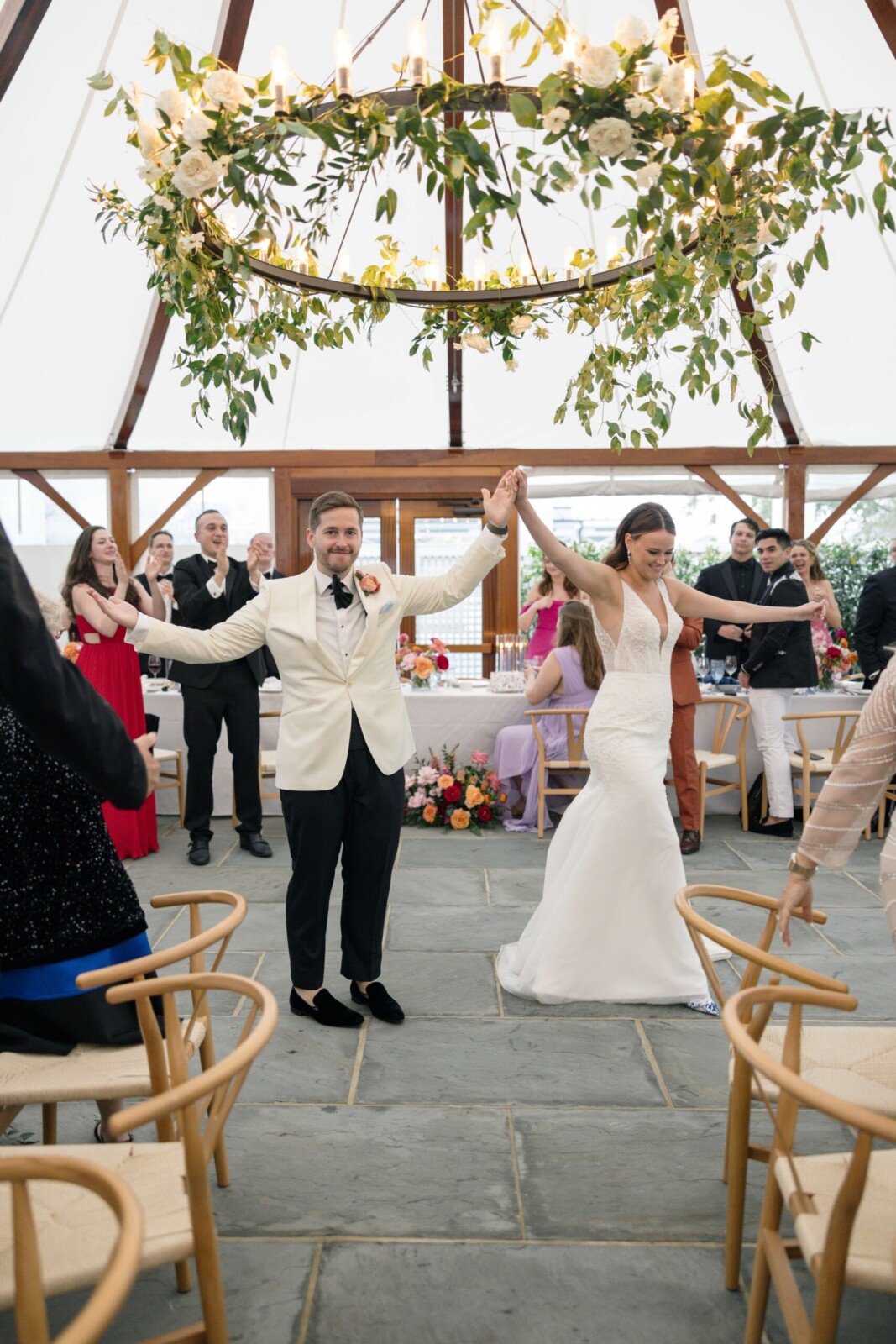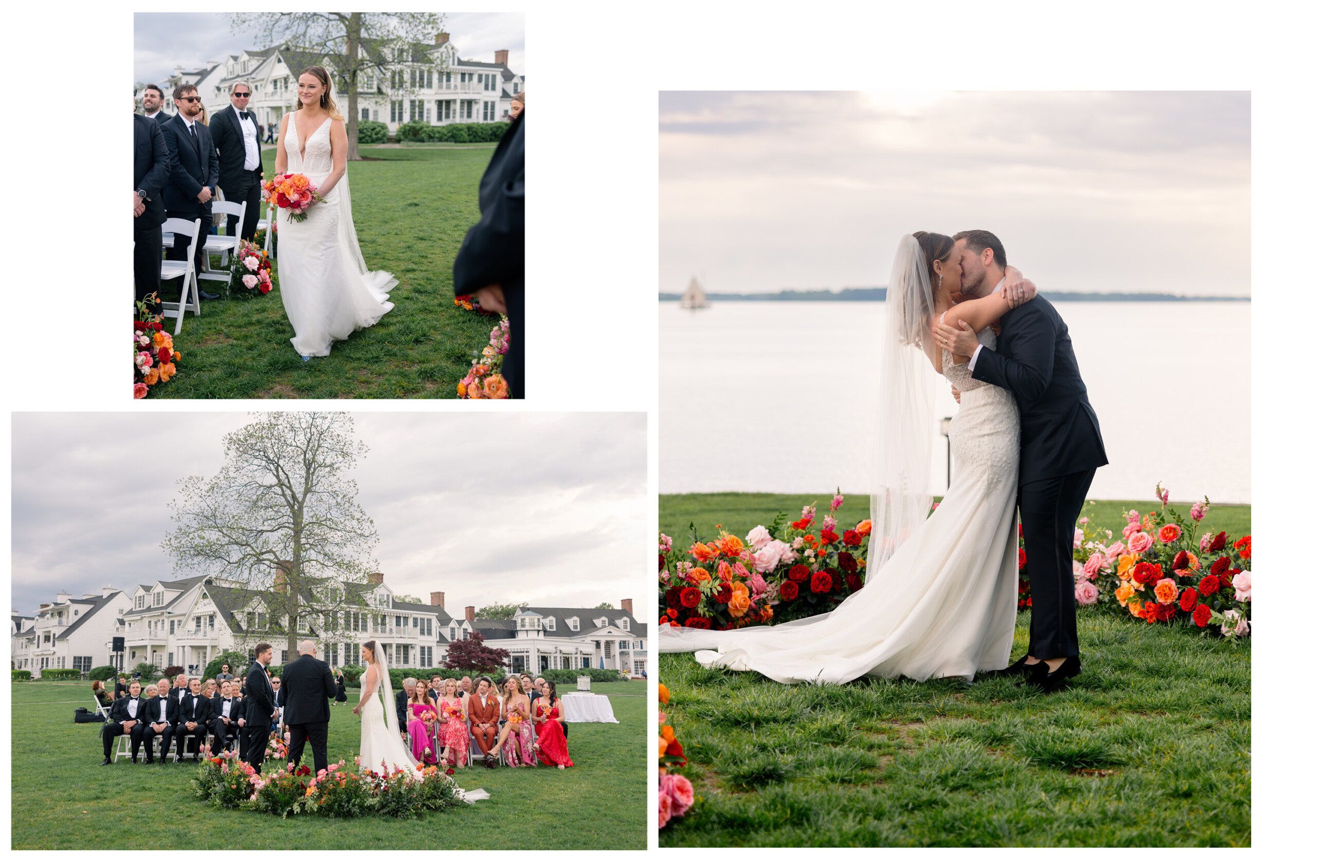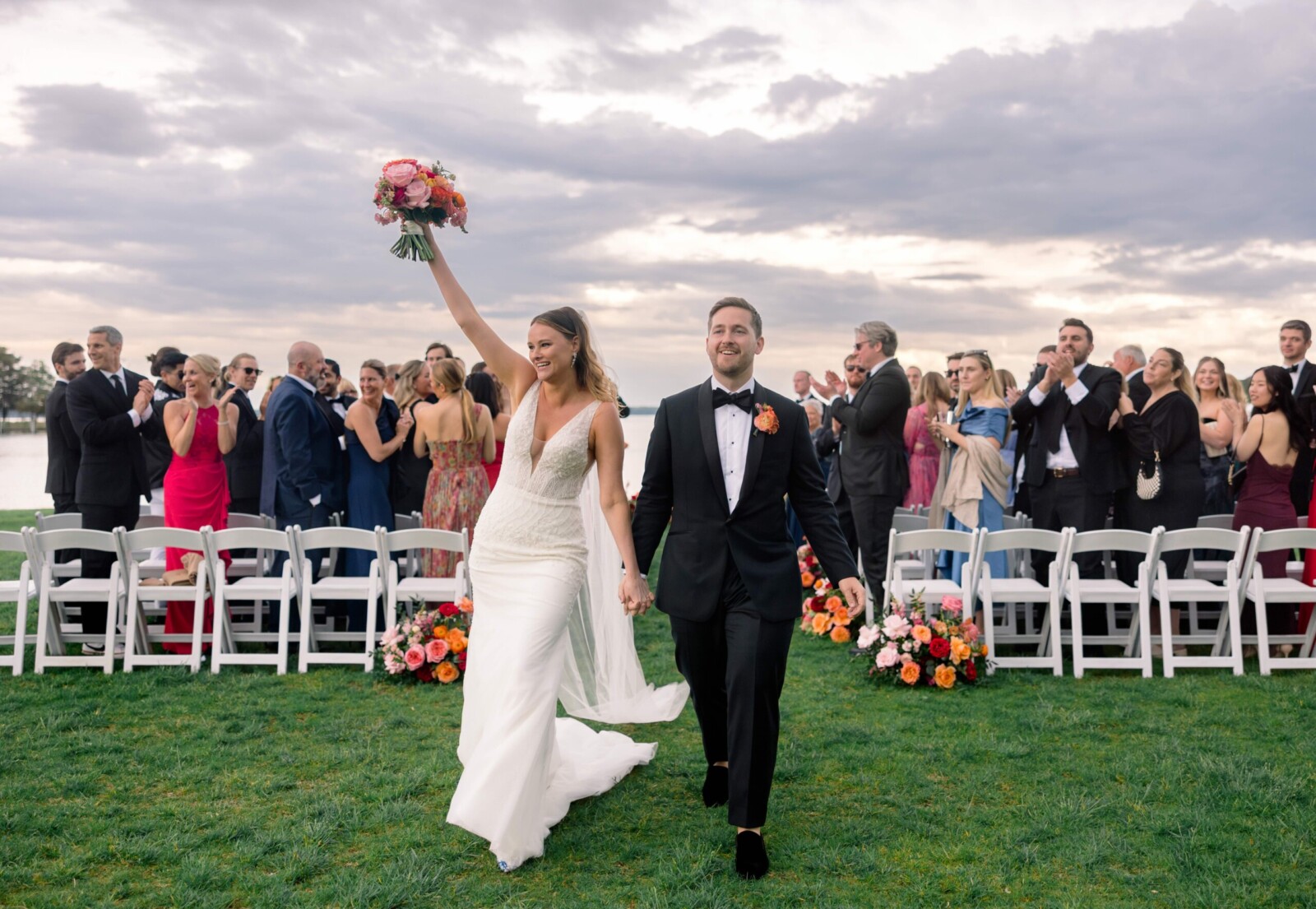 "Our vendors transformed potential challenges into pure magic," the couple shares. "Knowing they worked together to ensure we could have our waterfront ceremony between rain showers was incredible. They made our vision come to life."