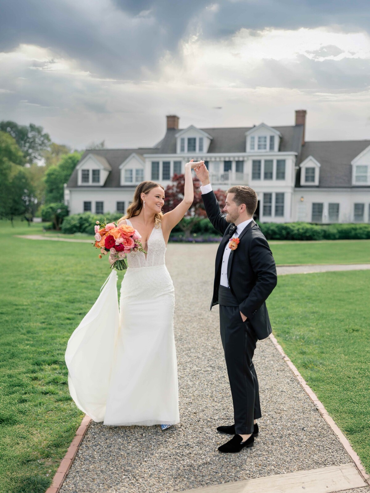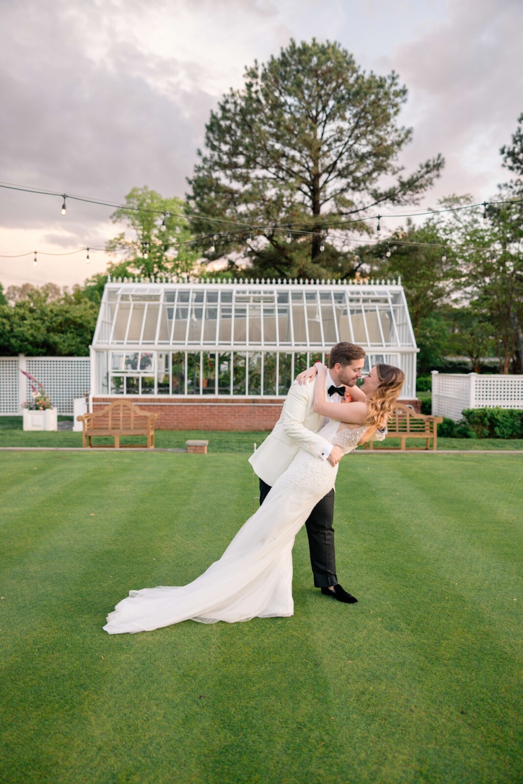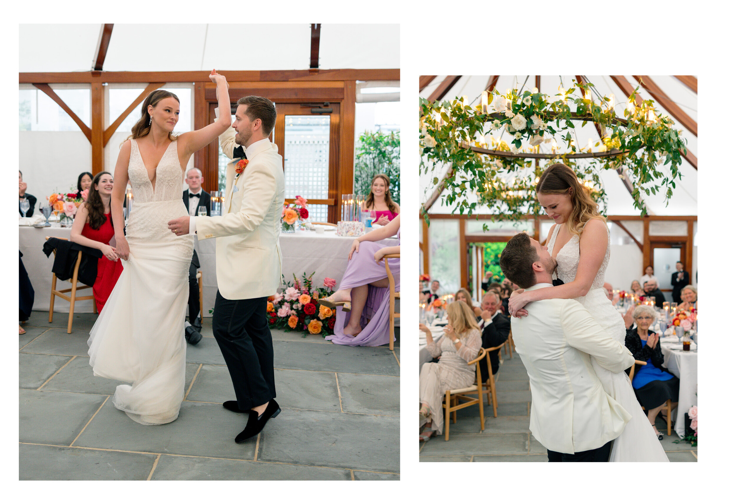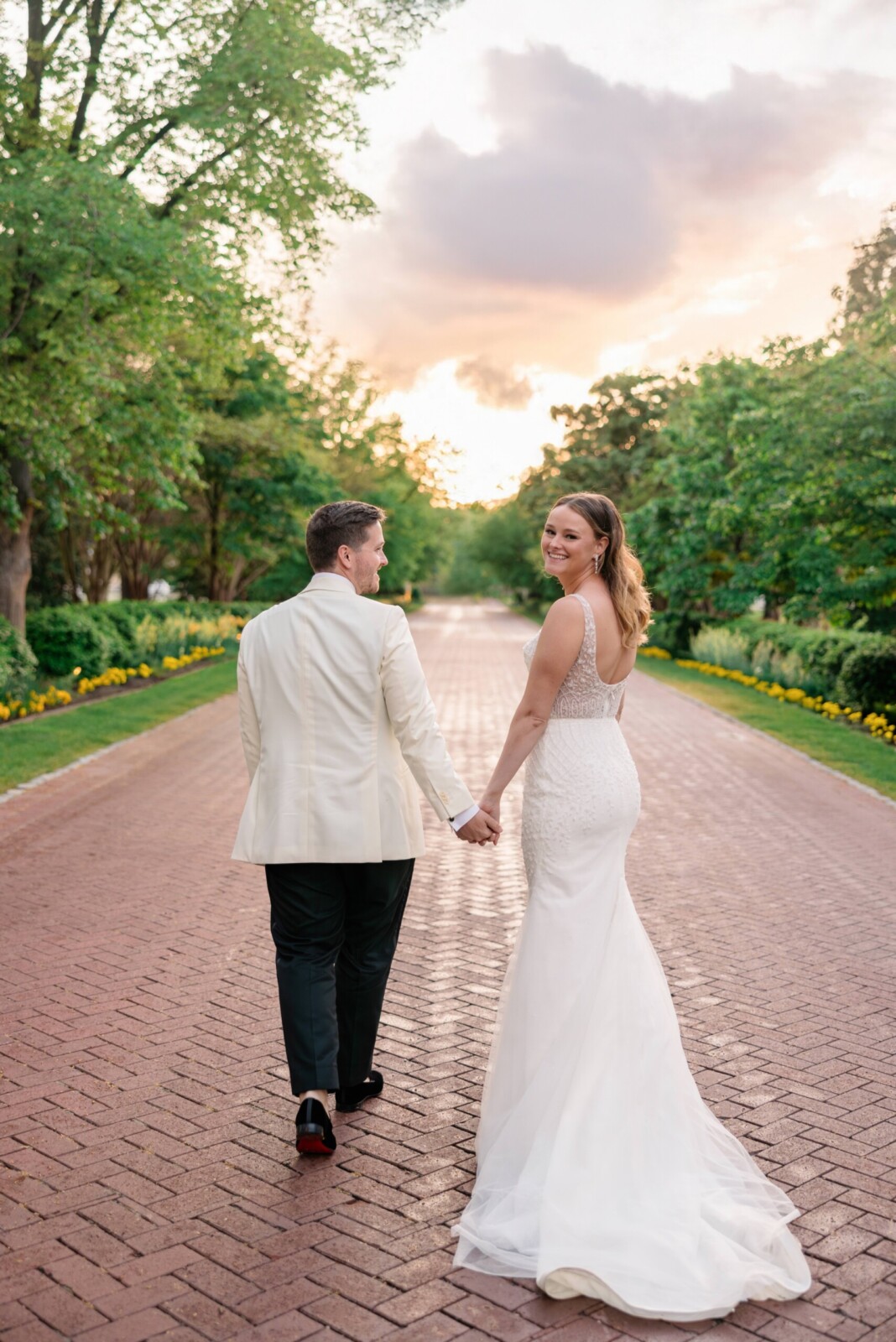 Even April showers couldn't dampen the celebration's glow. Through the seamless collaboration of their expert vendor team — from the venue staff to the florist, DJ, and violinist — Alexis and Thad achieved their dream of exchanging vows outdoors, with the setting sun painting the sky in perfect harmony with their carefully curated color palette.