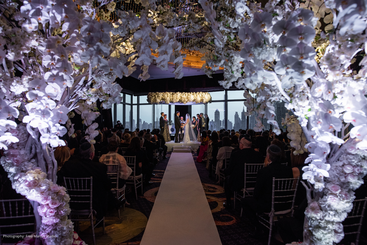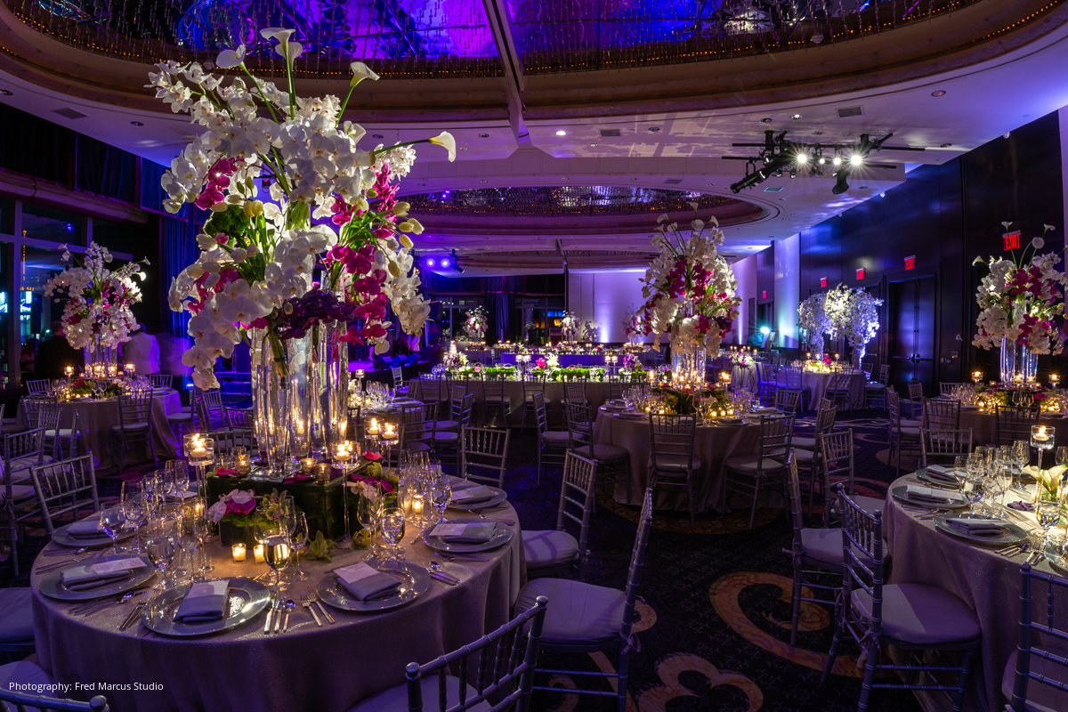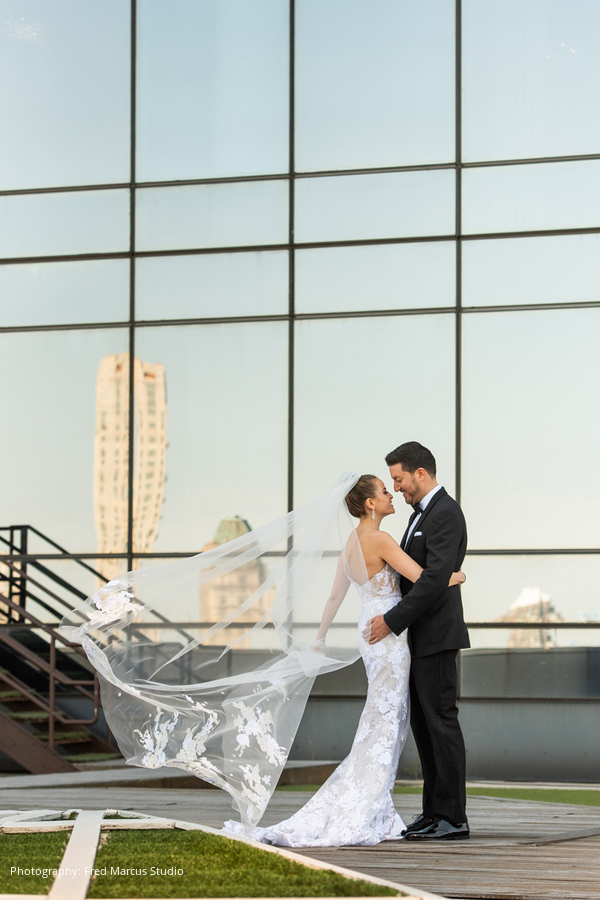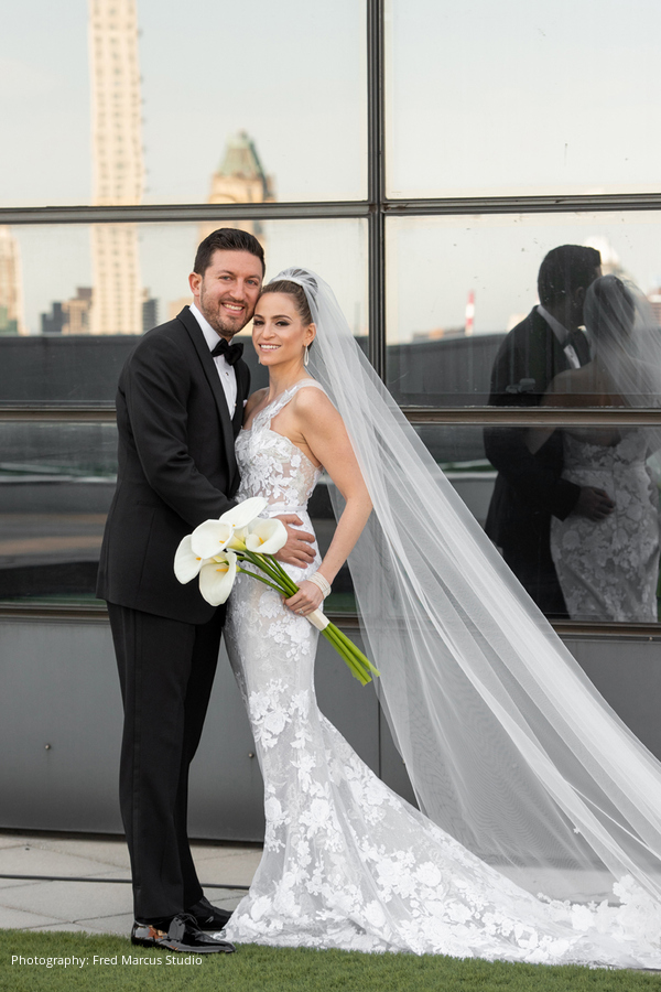 Floral and Event Design: Tantawan Bloom, New York, NY; Wedding Dress: Mira Zwillinger, New York, NY; Groom’s Attire: Ralph Lauren Purple Label