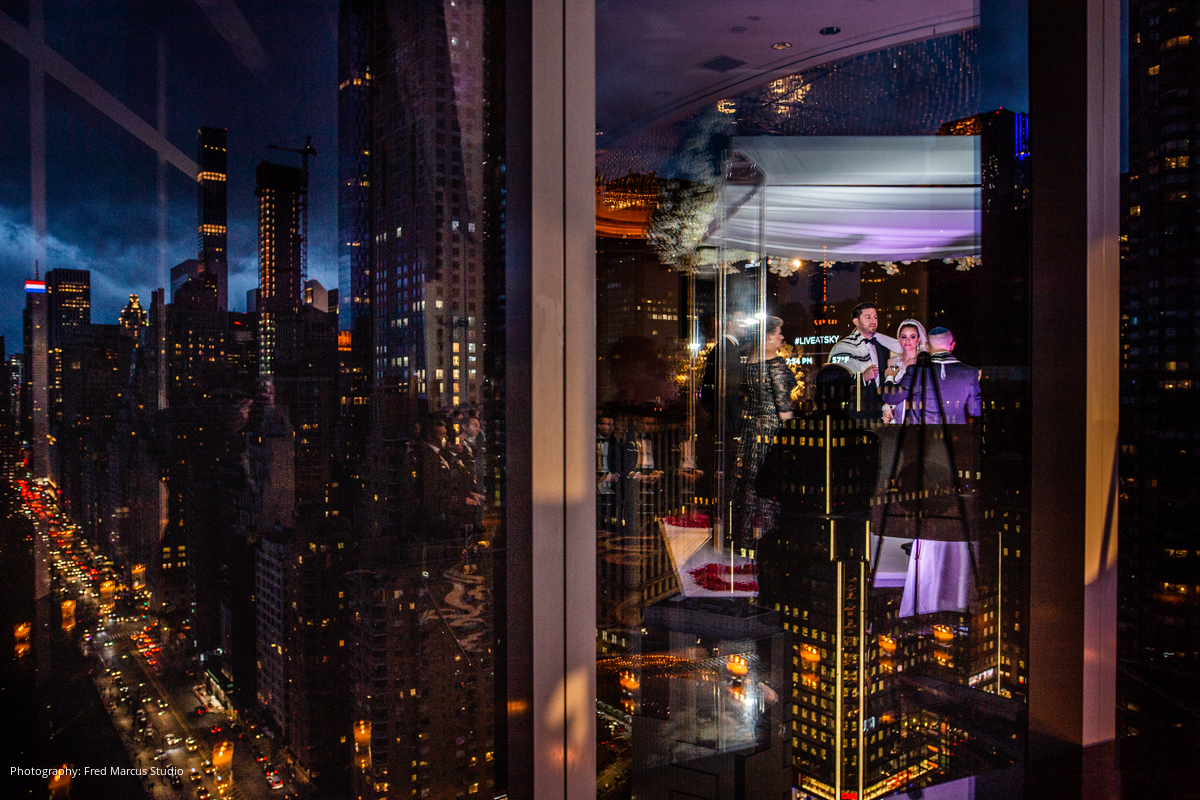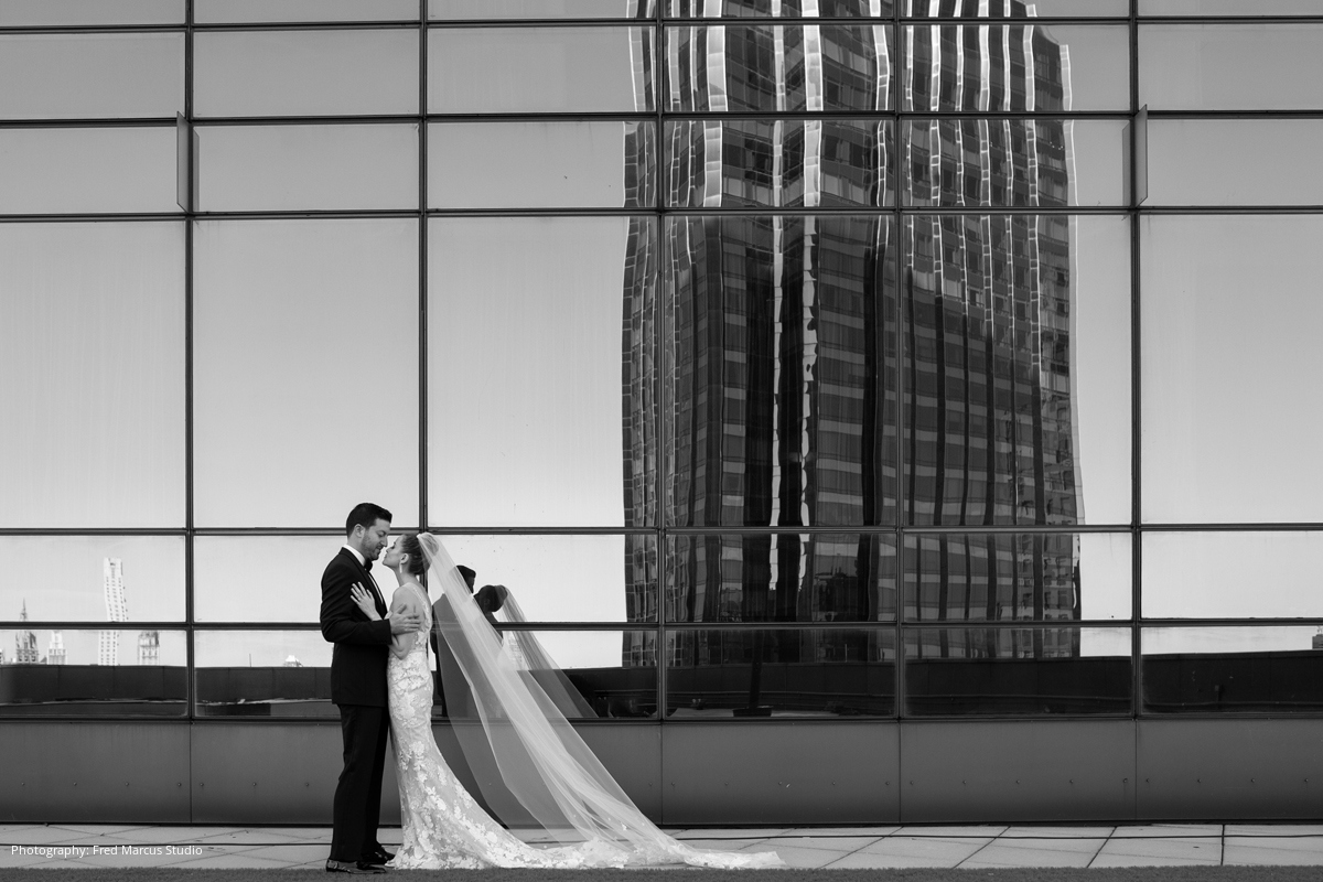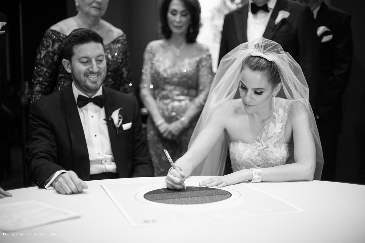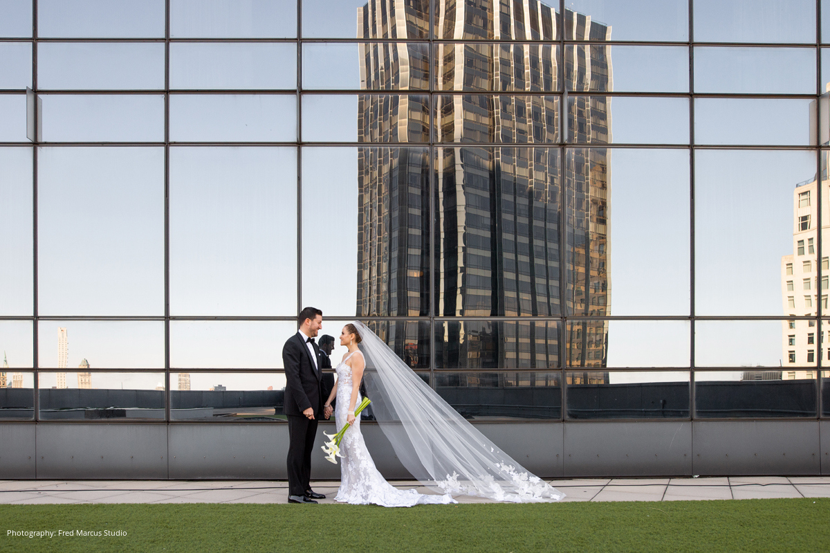 Floral and Event Design: Tantawan Bloom, New York, NY; Wedding Dress: Mira Zwillinger, New York, NY; Groom’s Attire: Ralph Lauren Purple Label