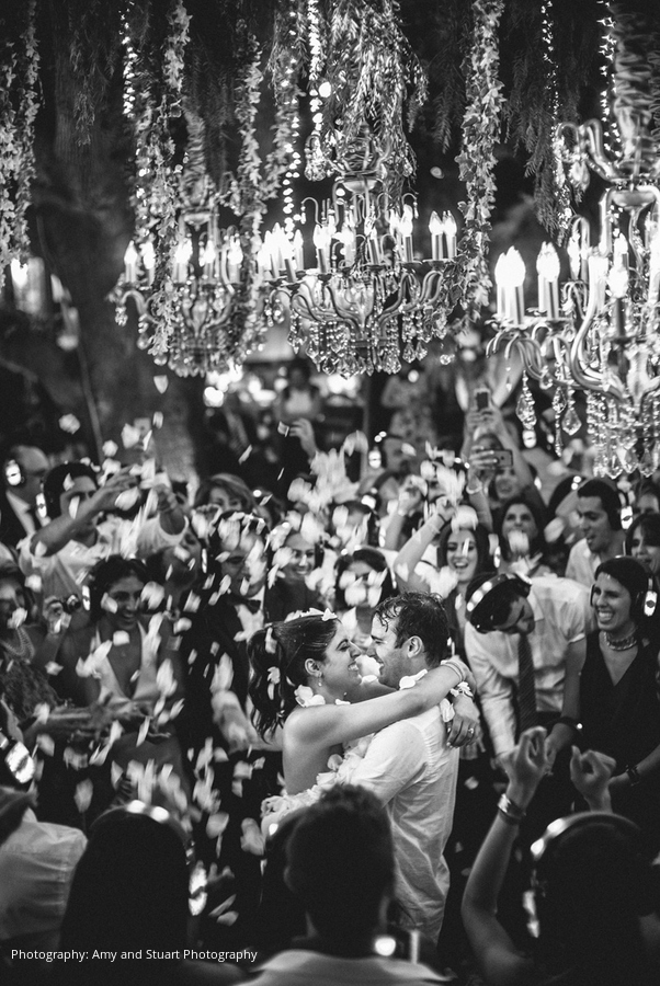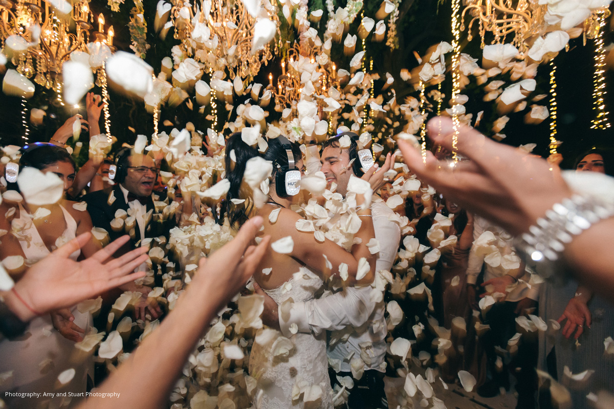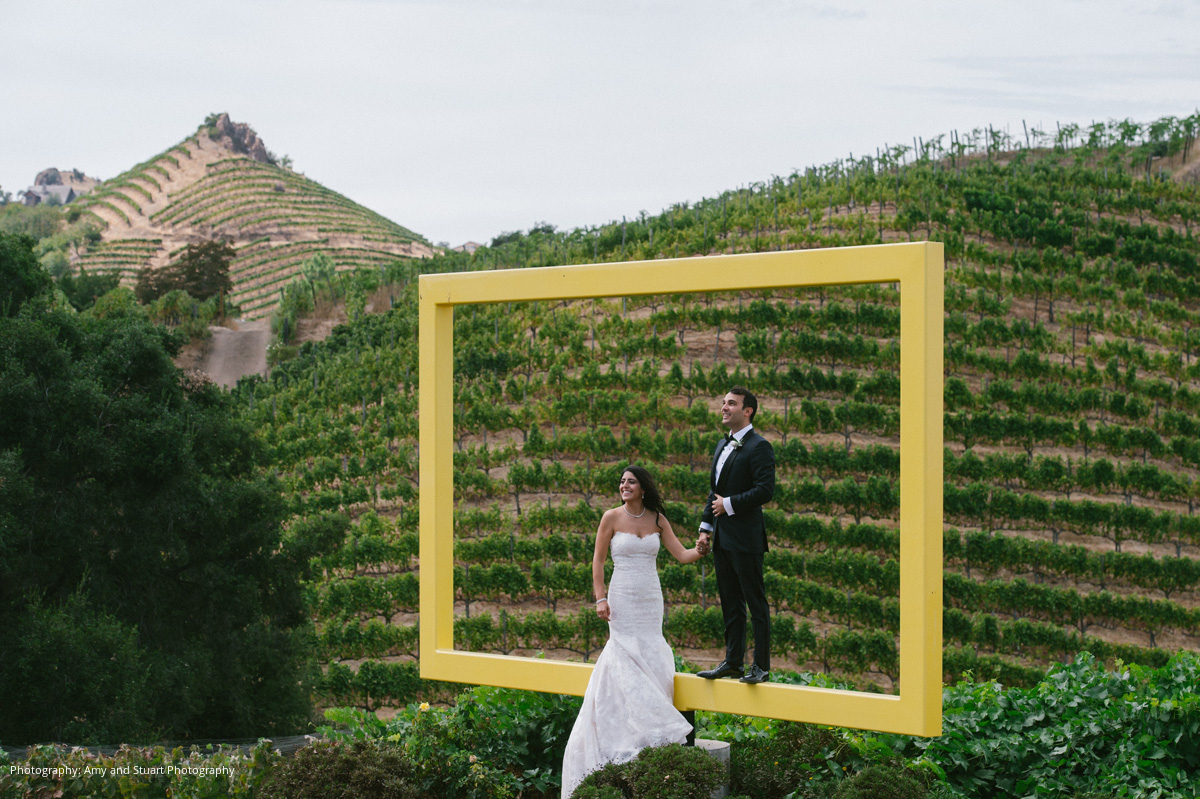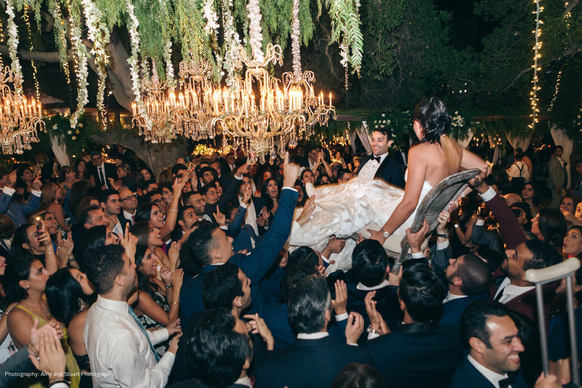 Kayvan and Natalie enjoyed every moment of their wedding planning process. “We went a little non-conventional for a Persian Jewish wedding and decided to get married on a vineyard outdoors,” Natalie explains. “With that in mind, we had to make sure every complaint that would come our way was covered. We had heel stoppers for all the women, and fans and parasols to deal with the heat and sun. Ultimately, our decisions paid off and it was really a truly unique and incredible night.”
