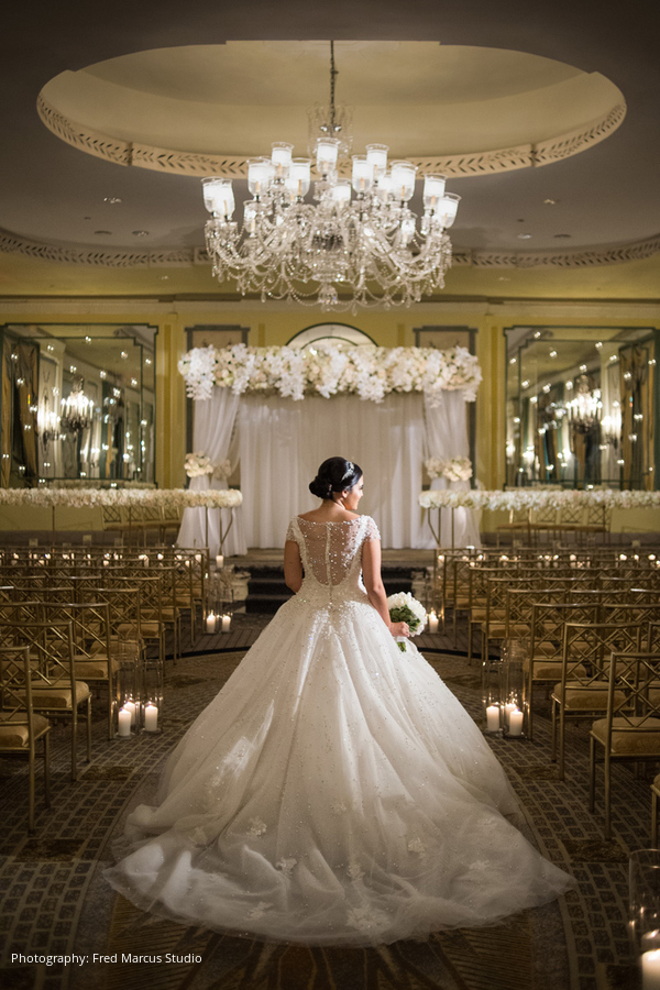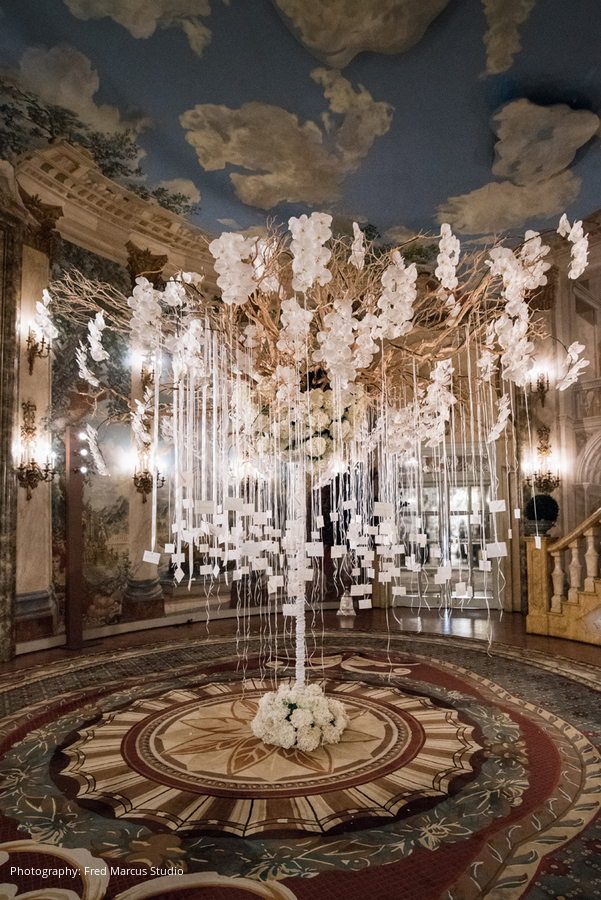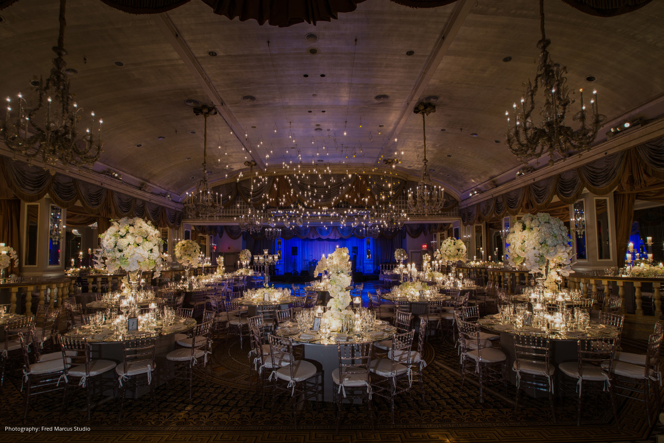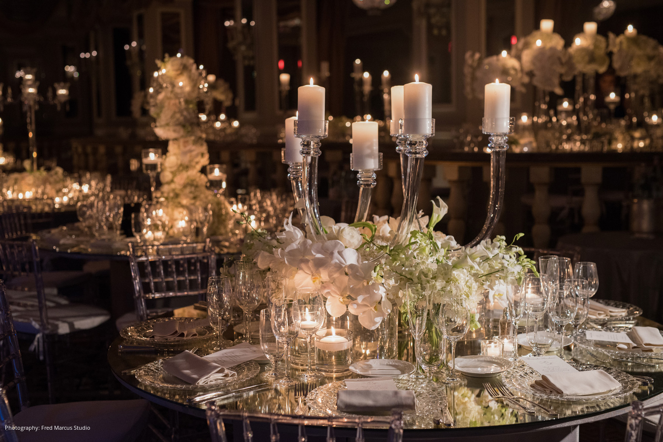 Location: The Pierre Hotel, New York, NY; Floral Design, Linen and Rentals: Atlas Floral Decorators, New York, NY; Cake: Foremost Caterers, Moonachie, NJ; Lighting: Frost Productions, New York, NY; Wedding Dress and Veil: Ines Di Santo; Bridal Salon: Bergdorf Goodman, New York, NY; Bride’s Shoes: Rene Caovilla