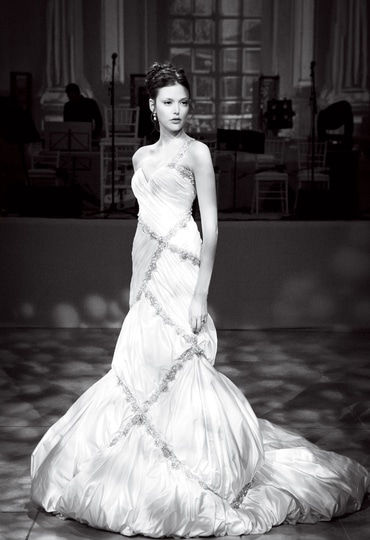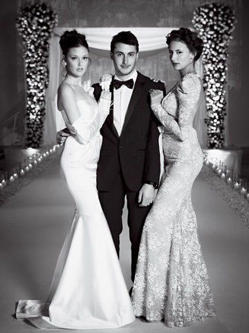 Managing her mom’s eponymous bridal salon, Hila says she knew that her nuptials could be no ordinary affair. In the end, Berta designed not one, but three dresses for the day—one for the ceremony and two for the reception. “Each was prettier than the other,” Hila says, adding that the two made a shopping trip to Paris just to purchase special fabric.