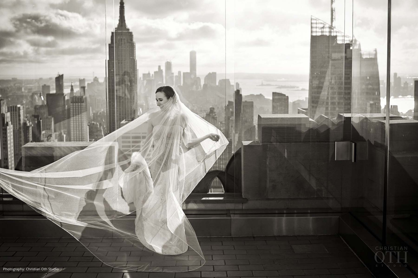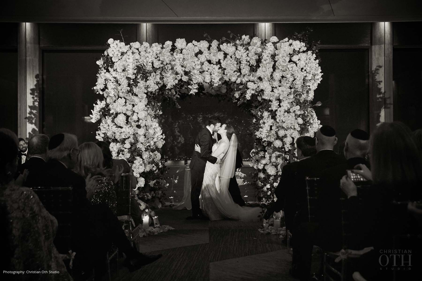 We loved that we had nearly a 360-degree view of New York, and the entire venue felt set up to accentuate these stunning sights. While we wanted to add our own personal touches – lots of flowers – working off the beautifully curated design of the space not only meant less design work for us, but I think it also enriched our vision of a formal city wedding.”