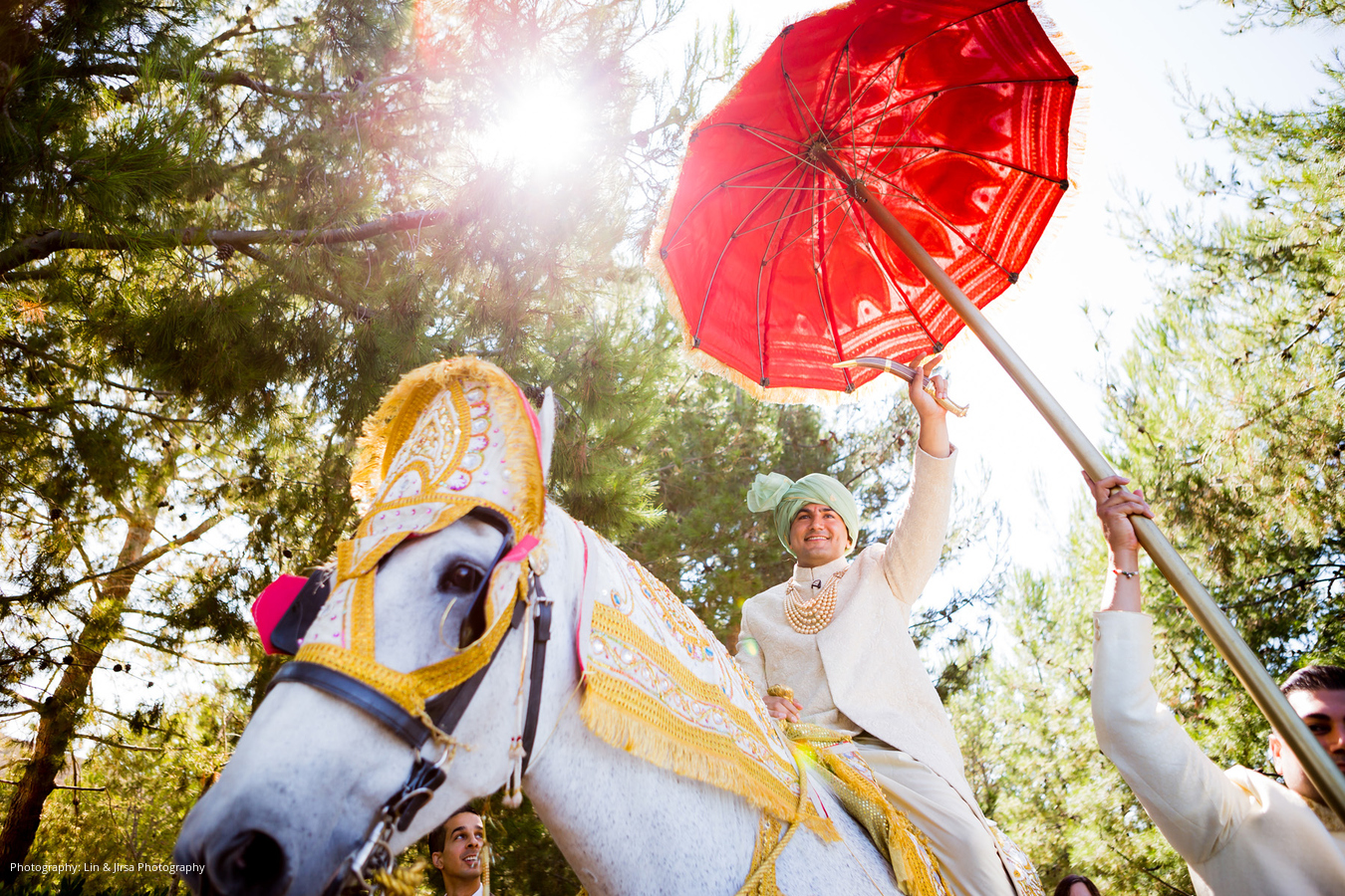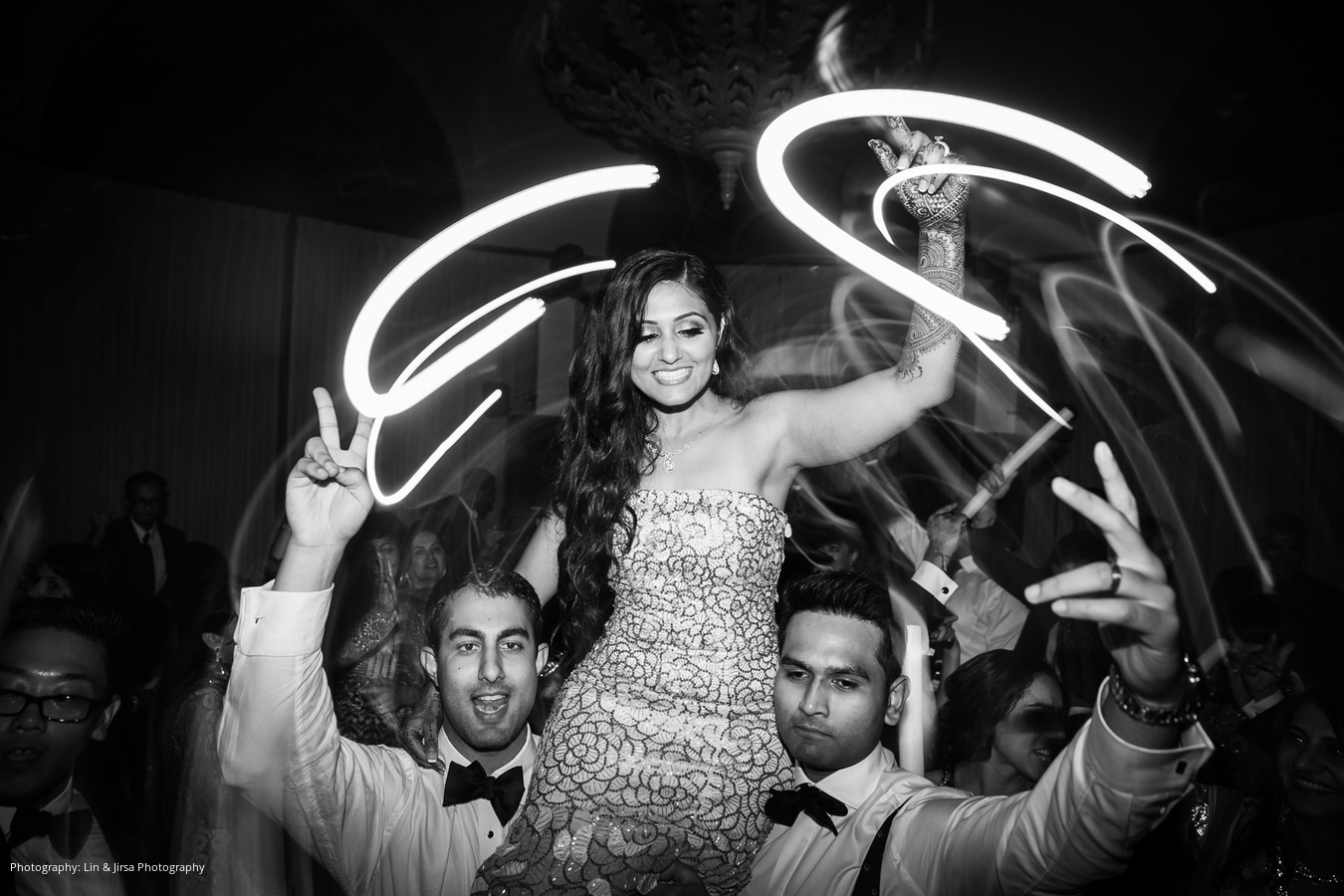 The wedding planning process was headed by Flavia of Allure Events Atelier. Like most Indian weddings, there were multiple events that took place during the days leading up to the ceremony. The wedding day was set for the date of the bride and groom’s eight year anniversary, and the entire day was breathtaking–everything the bride had envisioned, and more. “Although it was the hottest day of summer, the wedding was awesome,” says the groom. “Everyone had a ton of energy. The flowers were gorgeous. There was so much happening that I barely remembered it all.”