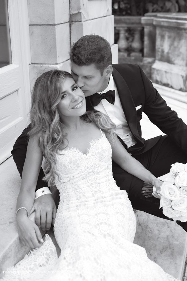 Wedding Dress: Pnina Tornai; Bridal Salon: Kleinfeld, New York, NY; Groom’s Tuxedo: Hugo Boss