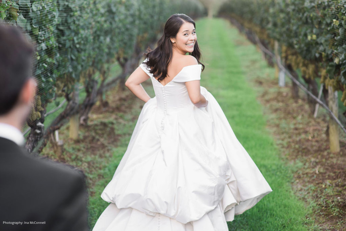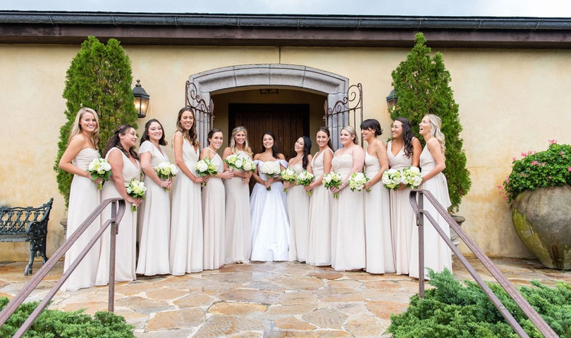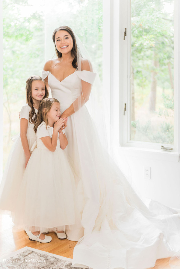 “We were so fortunate to have our family friend and favorite baker, Carissa Waechter of Carissa's Breads, make our wedding cake,” the bride adds. “It was a beautifully simple white cake with white roses on the tiers. Instead of a guest book, we had our guests sign bottles of Wolffer wine that we will drink on our 1st, 5th, 10th, and 25th anniversaries.”
