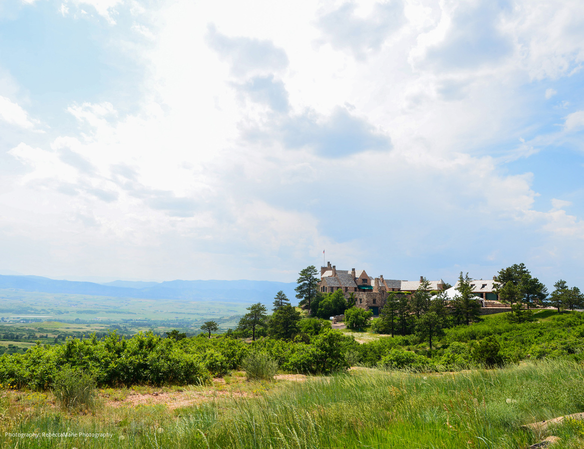For the wedding venue, the couple wanted to choose a location that showcased Colorado’s beautiful scenery. They fell in love with the Cherokee Castle and Ranch, located on a bluff overlooking the mountains and valley below, with the Denver skyline in the distance.