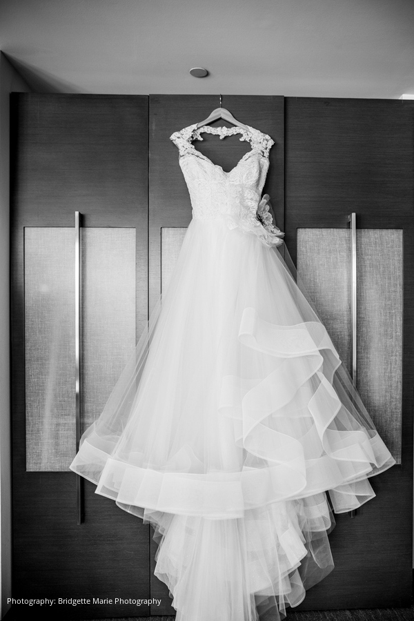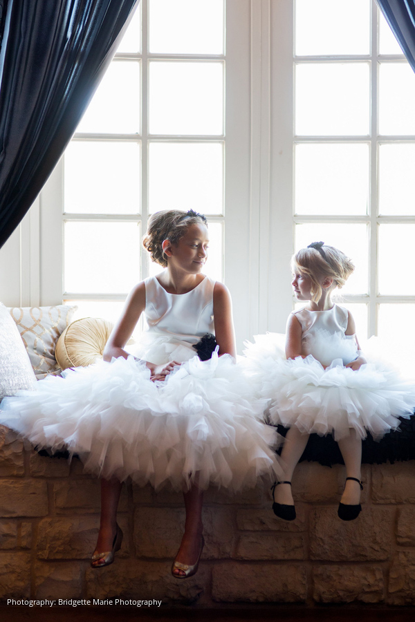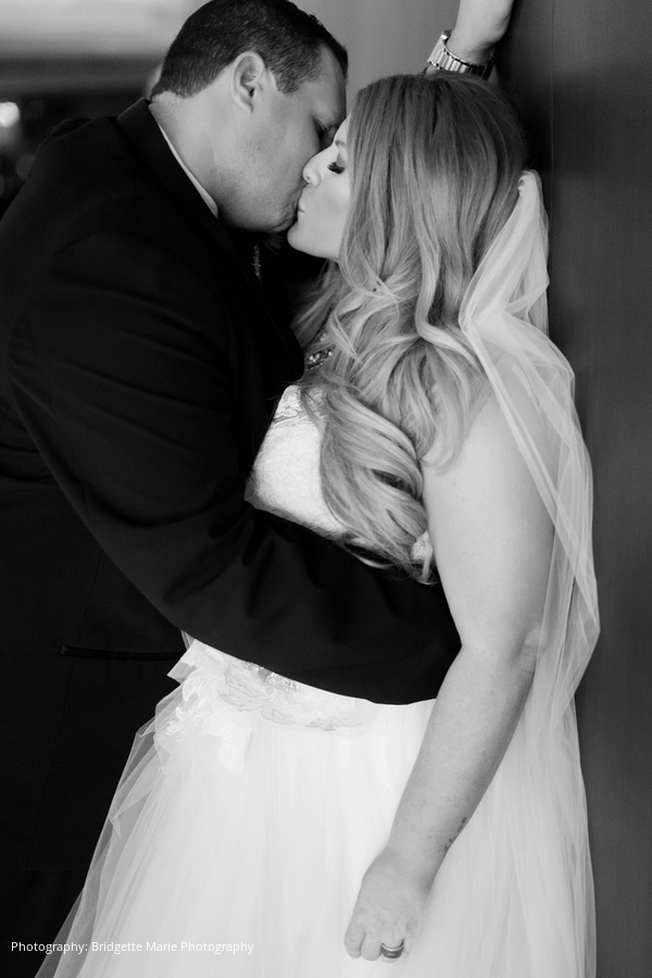 Looking picture perfect, the bridal party proceeded to the wedding venue in a party bus. The wedding planner, Amina of Some Like It Classic, and her team truly outdid themselves and made all of Megan’s wedding design dreams come true. Before the ceremony, the bridesmaids, flower girls, and mothers of the bride and groom relaxed together, while Megan sent some of her girls to check in on Vinny. He had requested not to see her before the ceremony, and Megan suspects he was feeling a bit nervous. “I guess he had already sweated through one of his tux shirts,” she jokes.