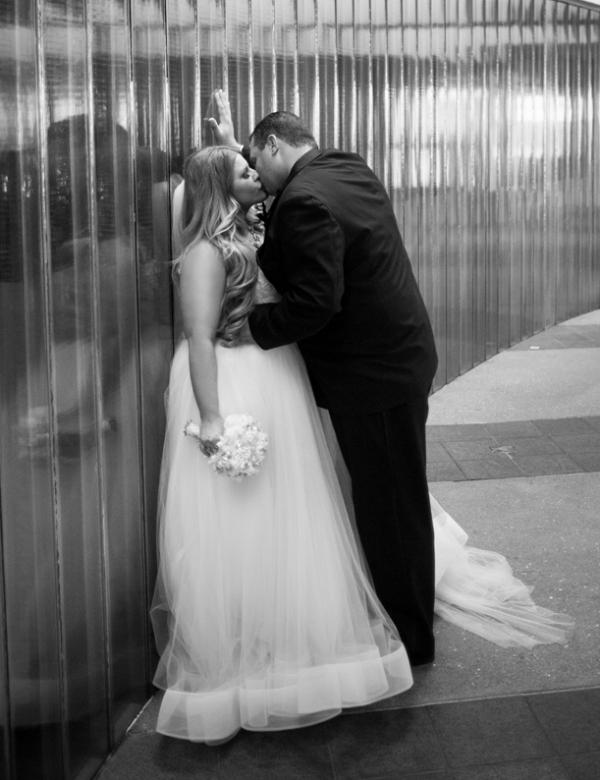 The bride’s father soon collected her for their walk down the aisle, and any nerves Vinny may have been experiencing subsided. “The look in his eyes was unforgettable,” says Megan. The nuptials was a wonderful experience, with their pastor giving a heartfelt and entertaining ceremony, making sure all the guests knew they were attending a Match.com wedding, and sharing funny stories about the couple. Megan’s aunt and uncle, who are world renowned opera singers, also provided a live performance. After the pastor declared “You may now kiss your bride,” Stevie Wonder’s “Signed, Sealed, Delivered” played as the newlyweds made their way back down the aisle, hand-in-hand, followed by their wedding party and family.