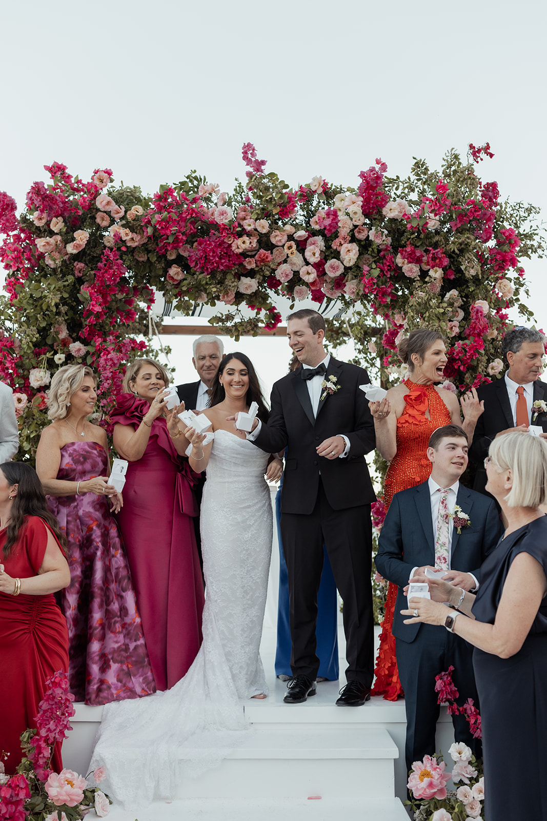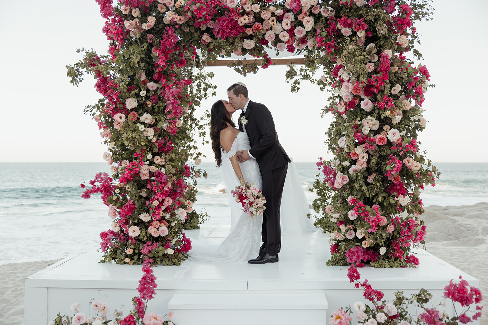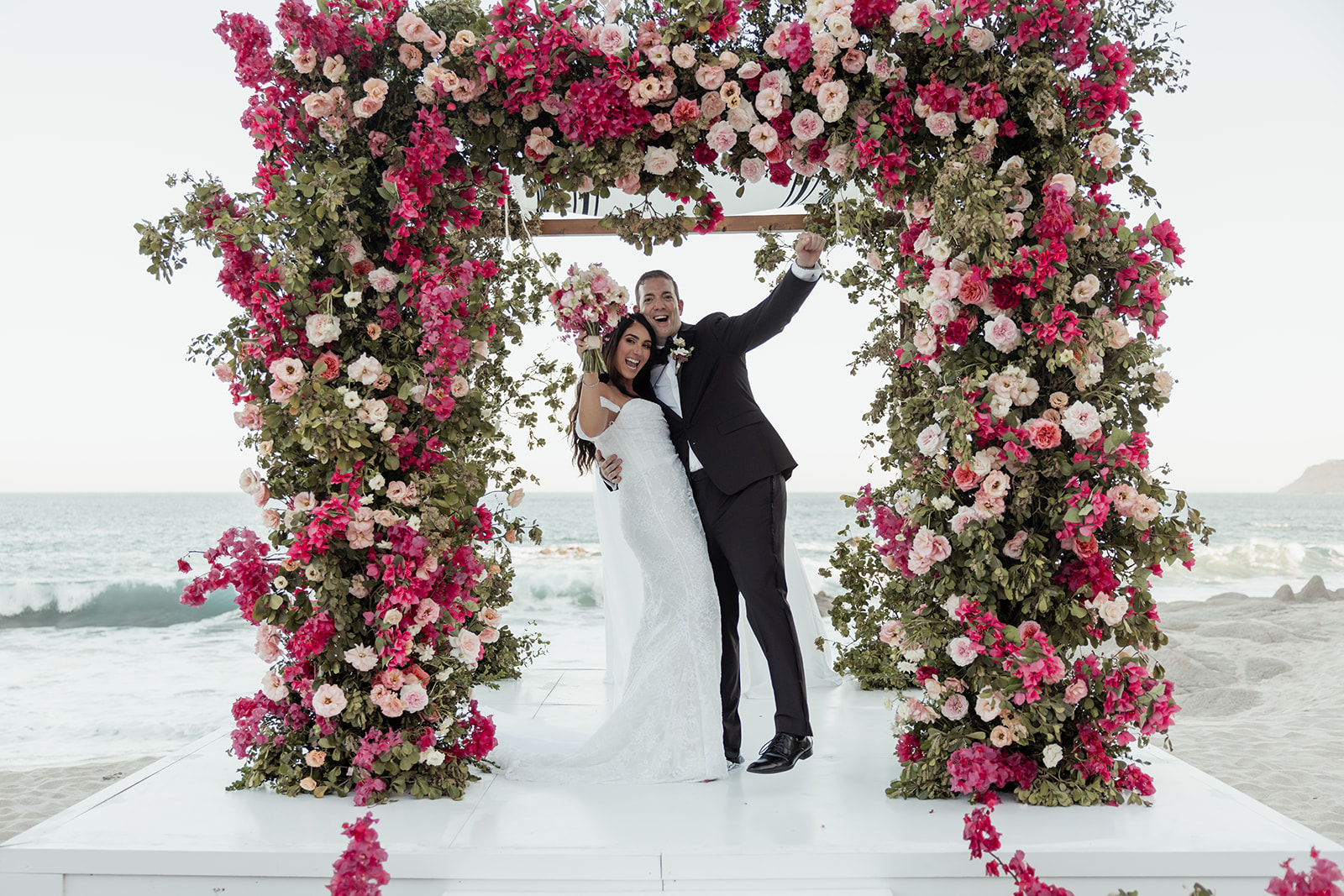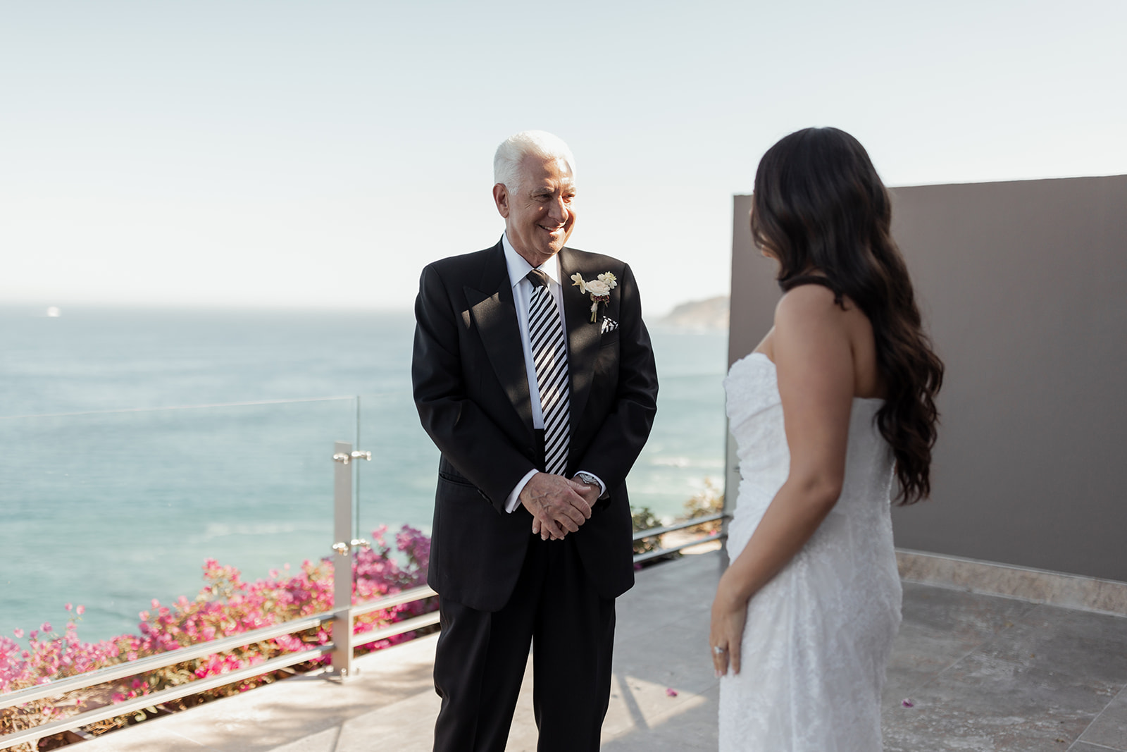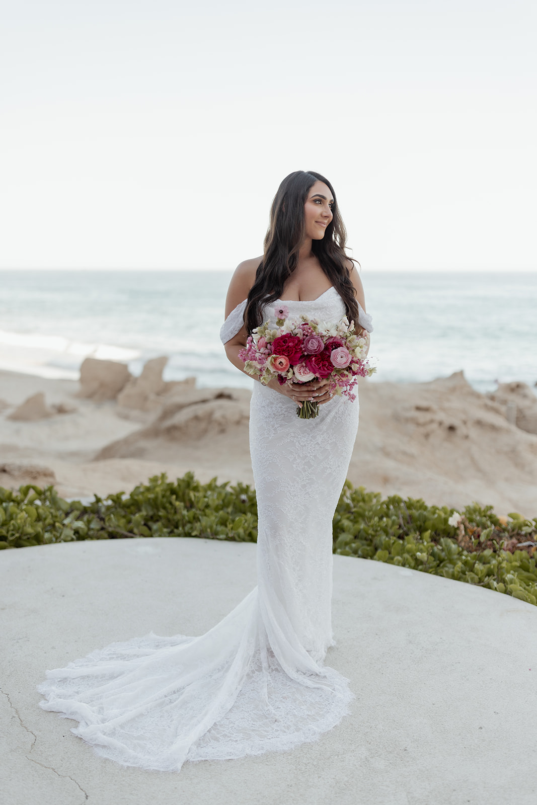 Surrounded by the exquisitely rugged setting of Mexico’s coastline, the bride and groom celebrated their nuptials amid a soft and romantic ambiance of lush florals, pops of pink, and Mexican influences.