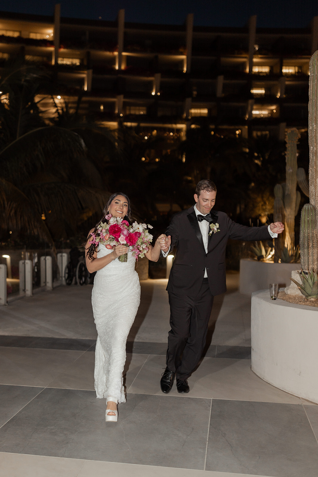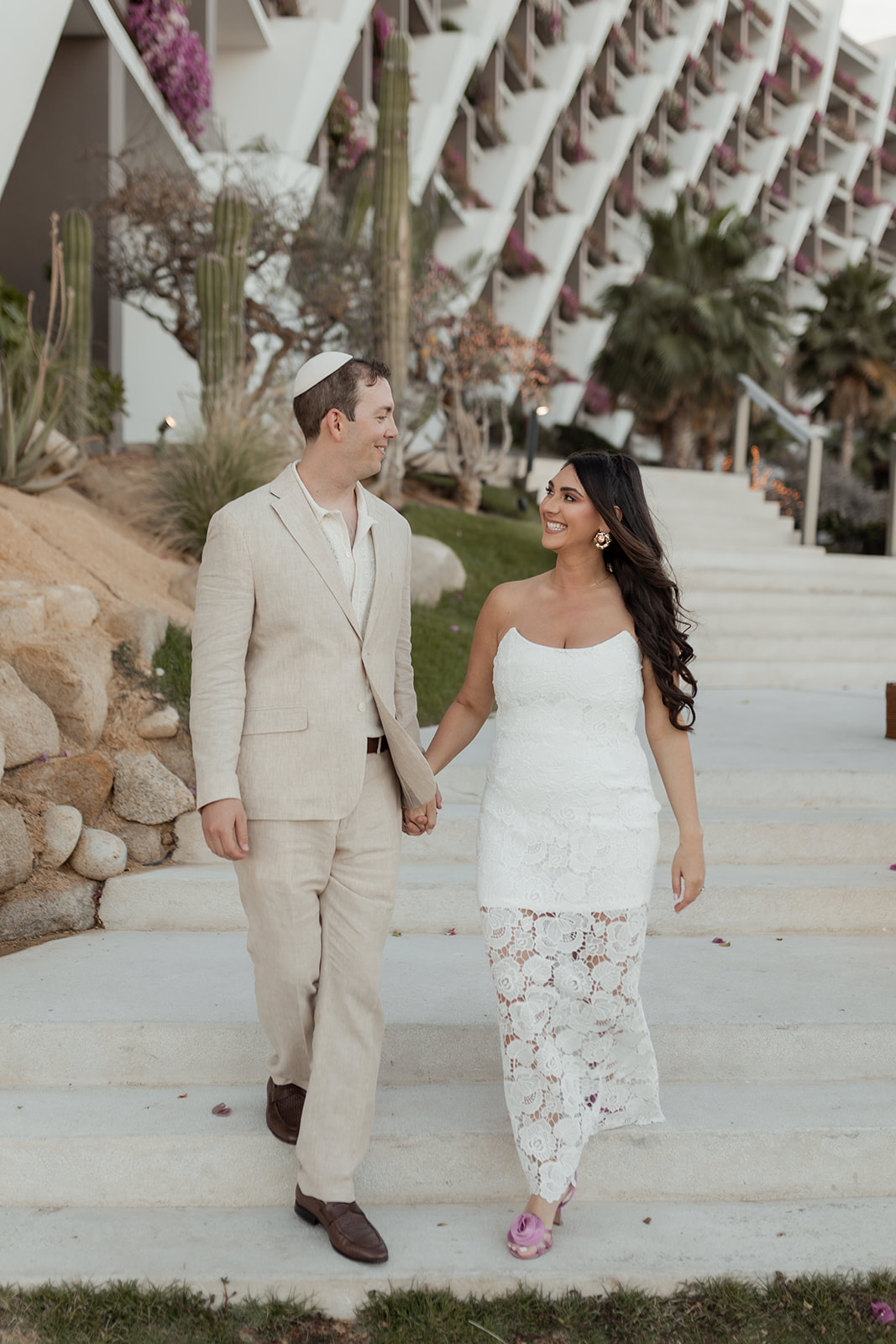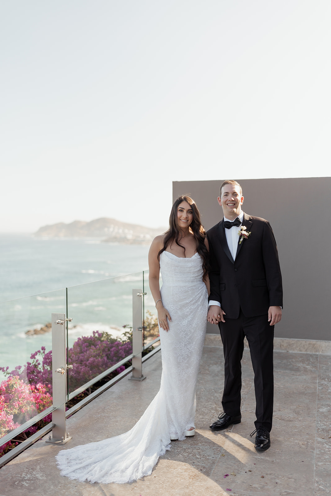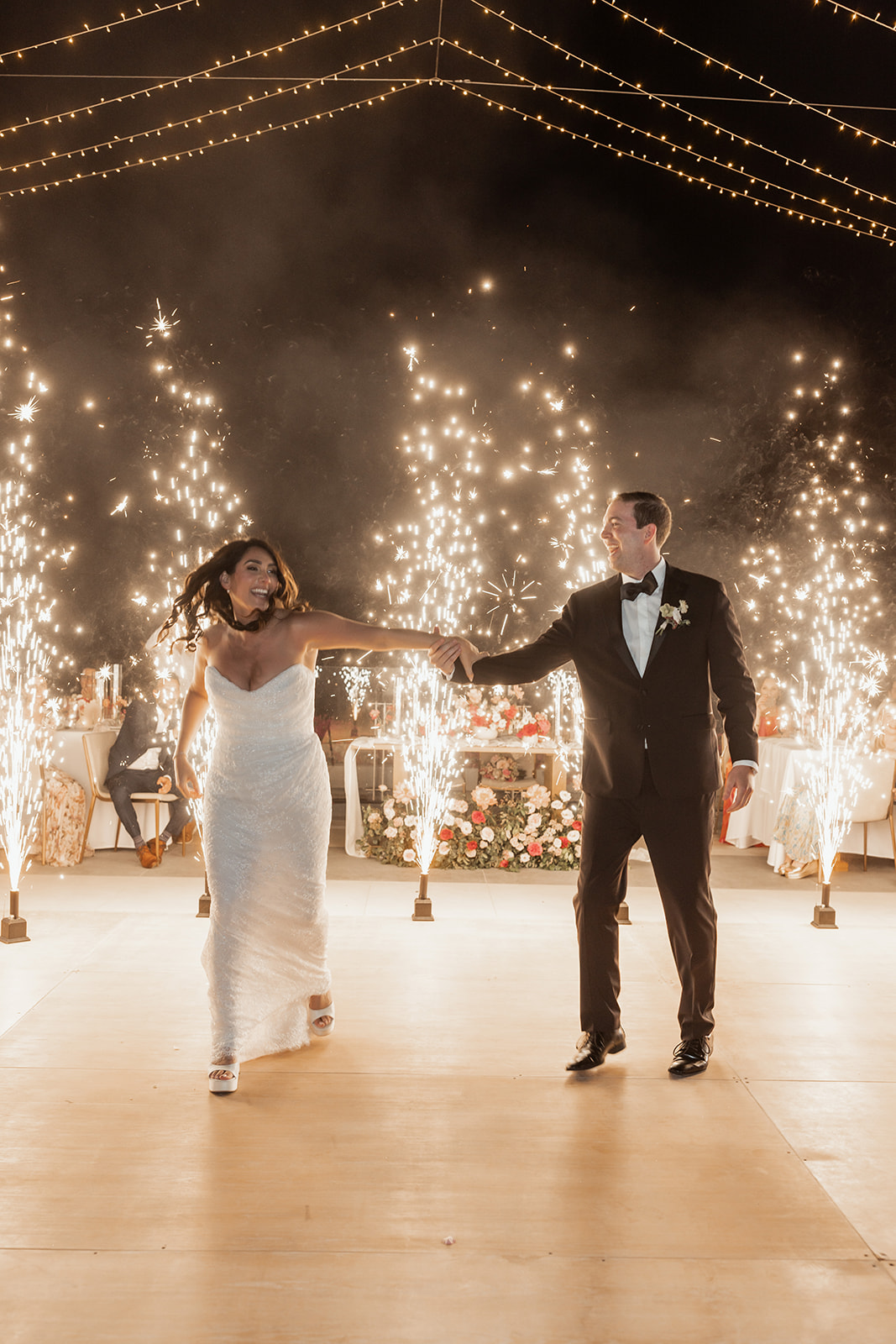 Location: Grand Velas Los Cabos, Los Cabos, Mexico; Planner: Lynette Dowe; Floral Design: Martha Lombelli; Rentals: Del Cabo, Cristina G; Lighting: Celtrev; Wedding Dress: Katherine Tash; Bridal Salon: Loho Bride West Hollywood; Reception Dress: Retrofete; Hair & Makeup: Piel Canela; Engagement Ring: Roei Froindlich; Entertainment: DJ Alex; Photography: Julieta Amezcua