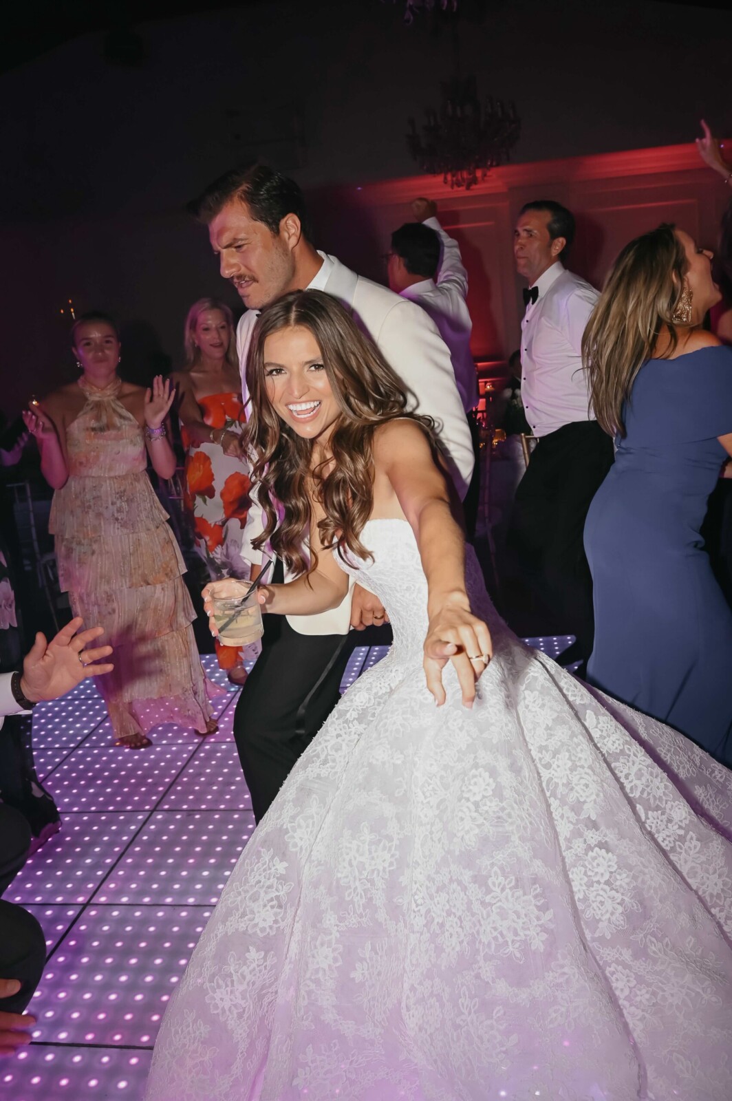 A candlelit wedding reception followed, which kicked off with a surprise introduction of the newlyweds—a choreographed dance to “You Never Can Tell” by Chuck Berry, from the movie “Pulp Fiction.” The night continued with beautifully written speeches, cake cutting, and another family tradition: Bryan and Ansley dancing to “That’s Amore” by Dean Martin while their guests circled around them. Later that night, the party carried on with an outdoor dance floor underneath the moonlit Miami sky.