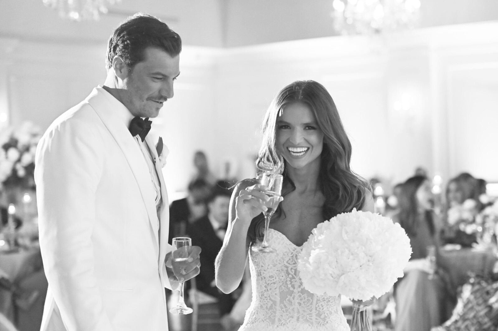 A Monique Lhuillier Wedding Gown and a Ralph Lauren Tux