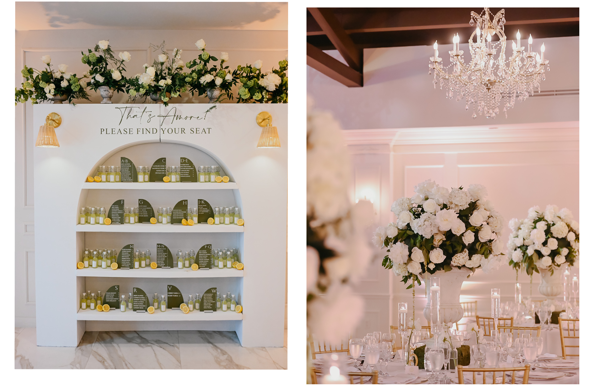 After a heartfelt ceremony at United Methodist, guests enjoyed cocktail hour at Club of Knights, complete with live music from Miami’s favorite violinist, Frank Lima, and personalized glass limoncello bottles for everyone to take home.