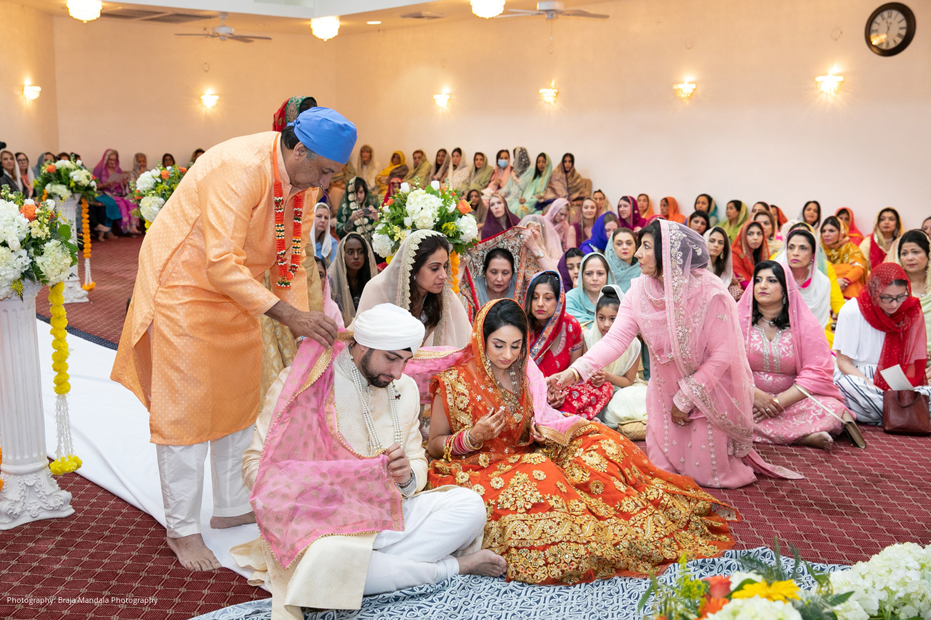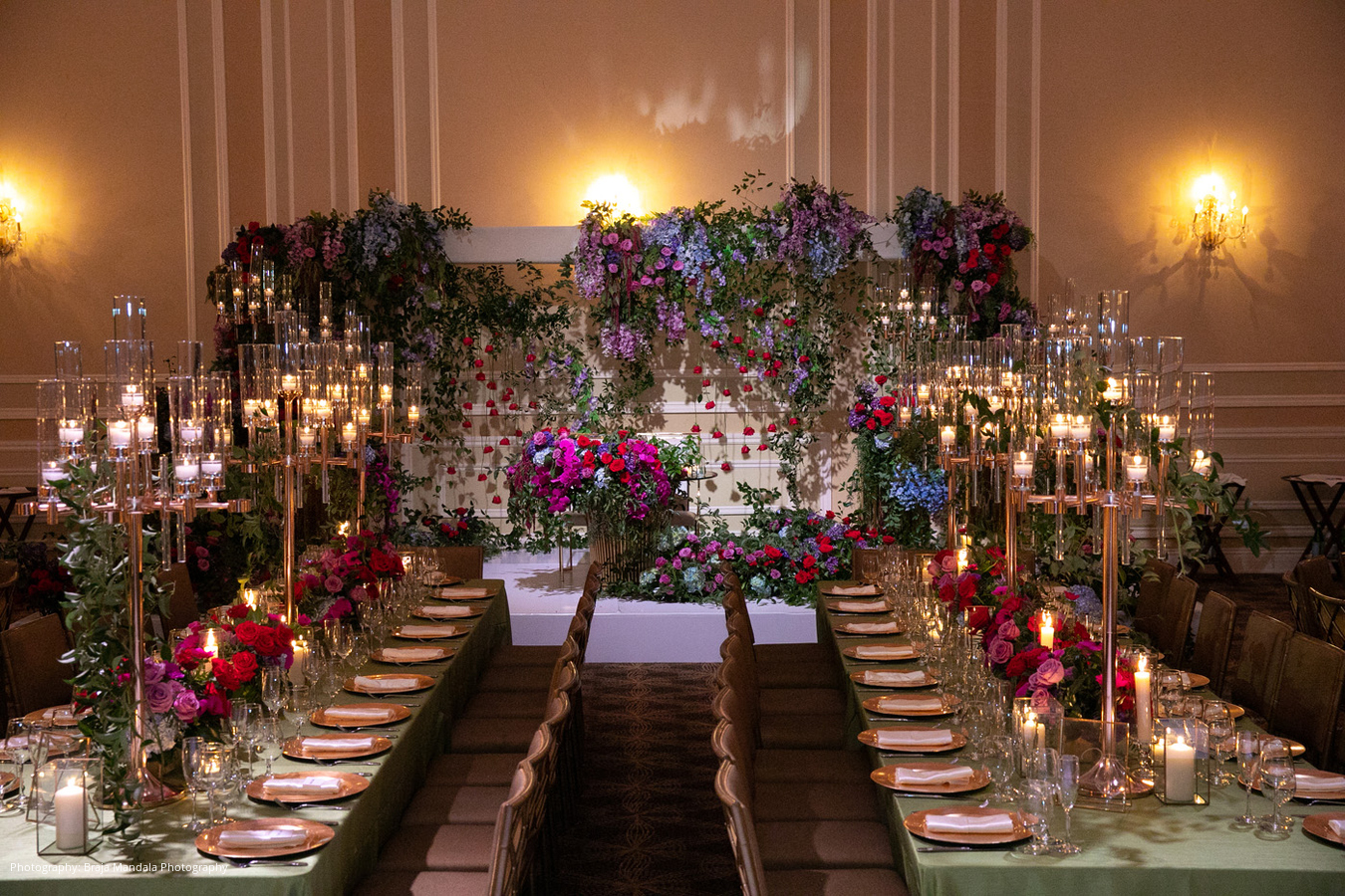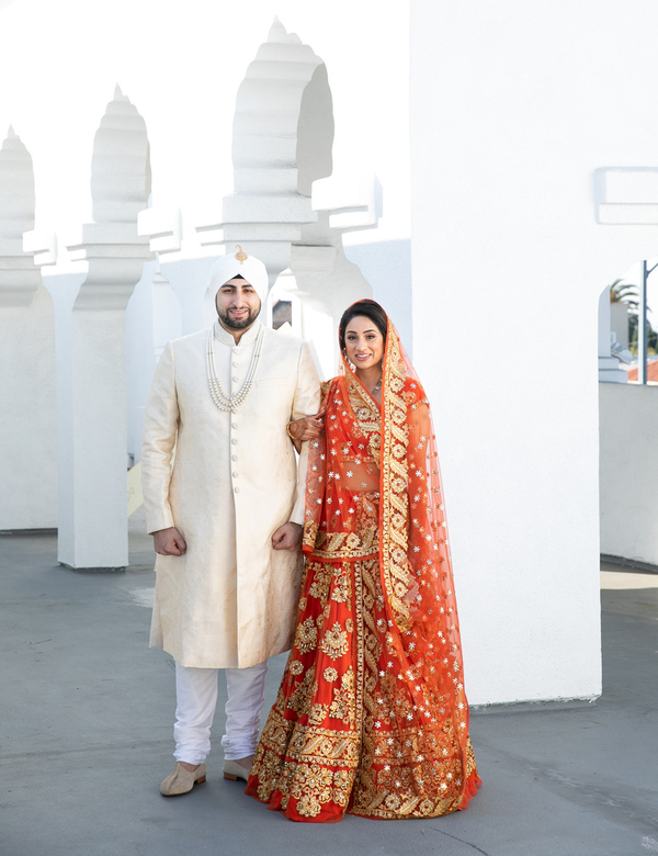 “Our wedding was beyond what we could have imagined,” says the bride. “It was a jam-packed weekend filled with our family, friends, unbelievable food, dancing, music, and amazing décor. From February 14 to February 16, 2020, we had nonstop events such as the Mehendi, Sangeet, and reception. Given that we come from different Indian religions, we also had two different ceremonies – a Sikh ceremony and a Hindu ceremony.”