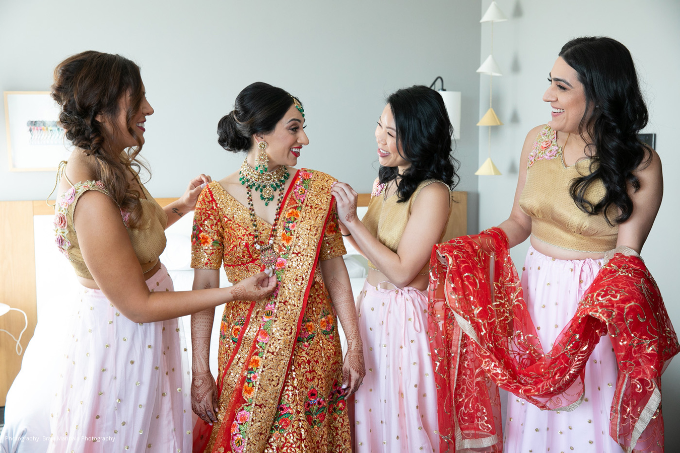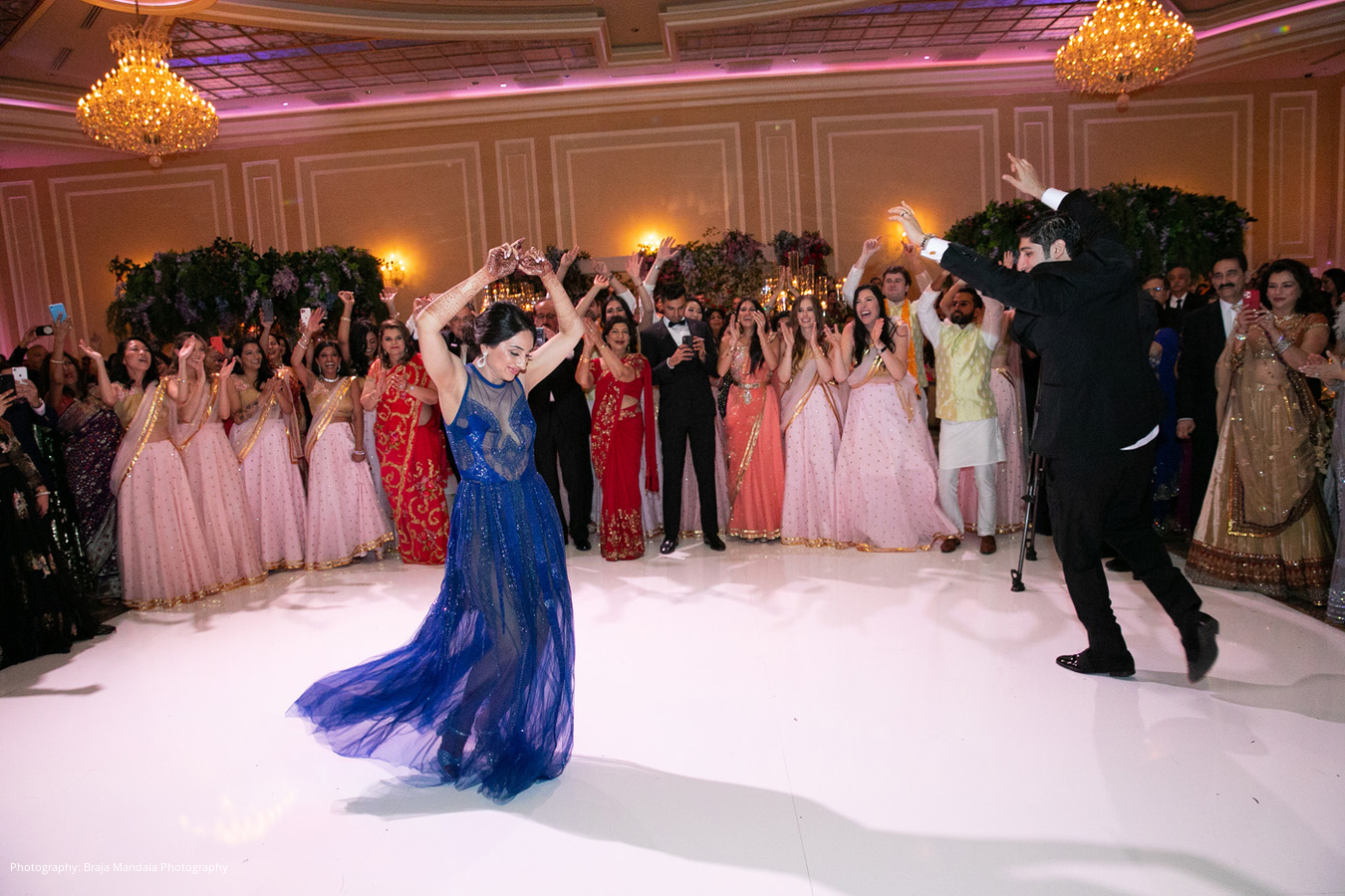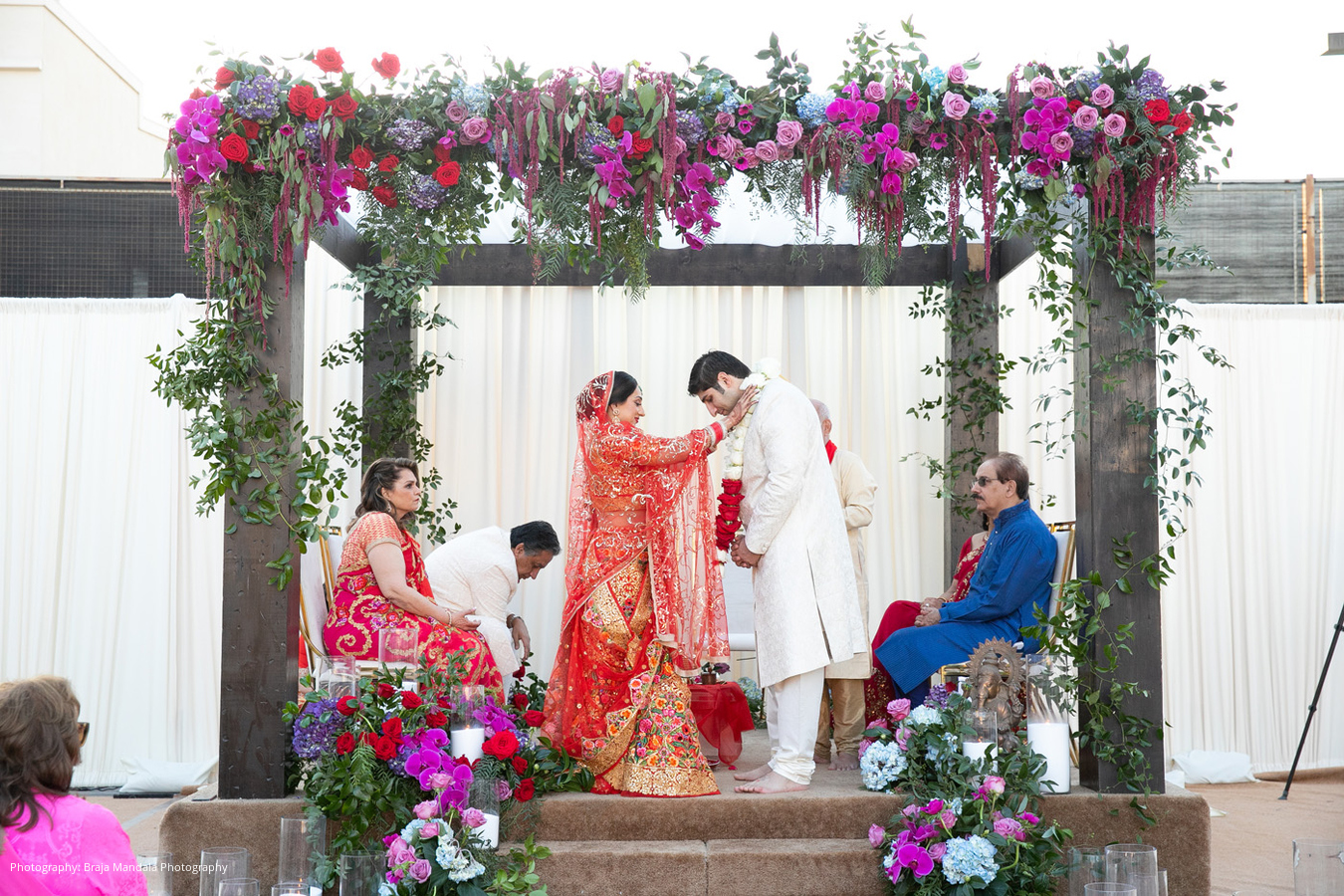 “Our wedding was beyond what we could have imagined,” says the bride. “It was a jam-packed weekend filled with our family, friends, unbelievable food, dancing, music, and amazing décor. From February 14 to February 16, 2020, we had nonstop events such as the Mehendi, Sangeet, and reception. Given that we come from different Indian religions, we also had two different ceremonies – a Sikh ceremony and a Hindu ceremony.”
