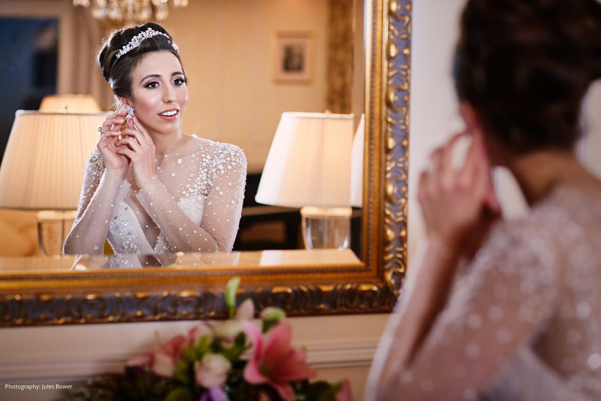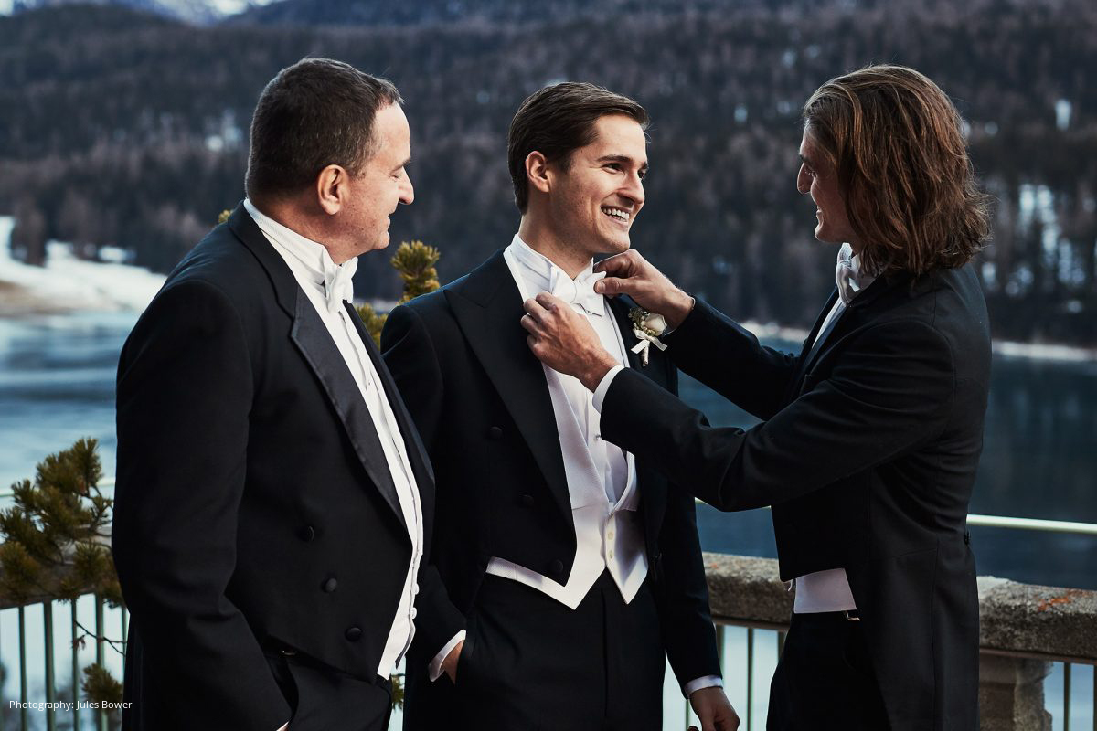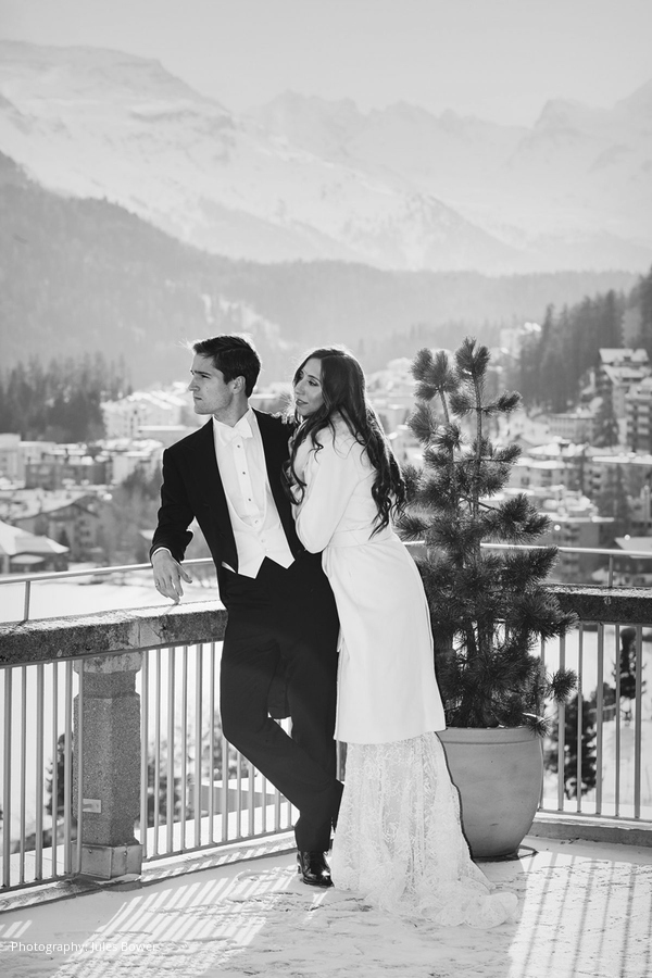 Location: Badrutt's Palace Hotel Saint, Mortiz, Switzerland; Ceremony Dress: Monique Lhuillier