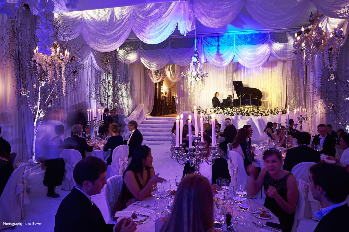 An equally impressive dessert bar was served after, featuring a variety of sorbet and Badrutt’s renowned chocolate cult buffet. Finally, the newlyweds pre-arranged a midnight snack of penne arrabiatta in anticipation of a full night of dancing, just in case anyone needed a carbohydrate refill.