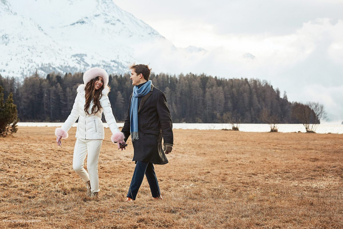 Alexandra and Eric’s wedding was just as fairytale-like as their engagement. With friends and family gathered from around the world, the two tied the knot at Badrutt’s Palace in St. Moritz, Switzerland. Tucked away in the snowy Swiss Alps, the destination wedding weekend was filled with pre-wedding festivities including horse-drawn sleigh rides through the mountain, chocolate making classes, sledding, skiing, and dancing at the star-studded King’s Club.