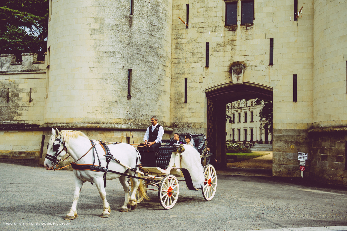 There were “glass slippers” from Jimmy Choo, a custom designed wedding gown from Ines Di Santo, a carriage drawn by white stallions, and wedding bells ringing at the chapel. Music was provided by celebrity performers, a fireworks spectacular was displayed, a Michelin star dinner with French wine was served, and the couple had their very own “fairy godmother” as a wedding planner.