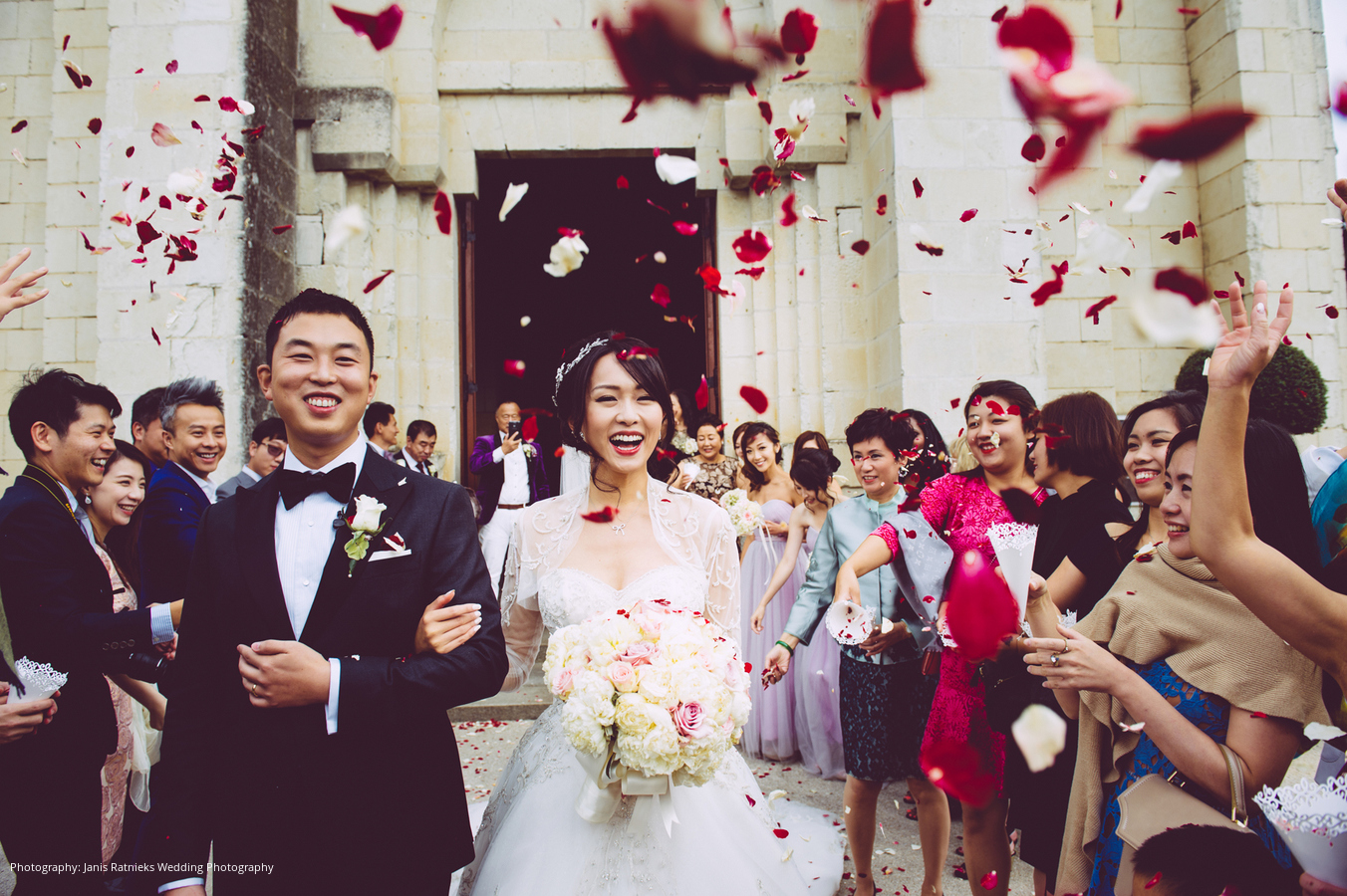 Every guest at the wedding was transported to a fairytale realm. An explosion of colors and awe-inspiring wedding décor filled the chapel, and the scent of lavender fields was present throughout the chateau grounds. Most importantly, the entire day was filled with an overwhelming sense of love – love between the couple, lifelong friends, and well-wishing family.