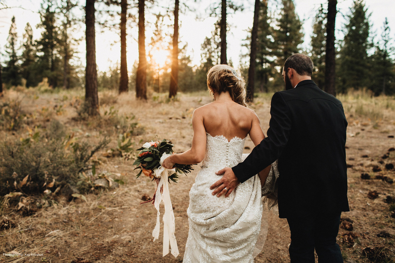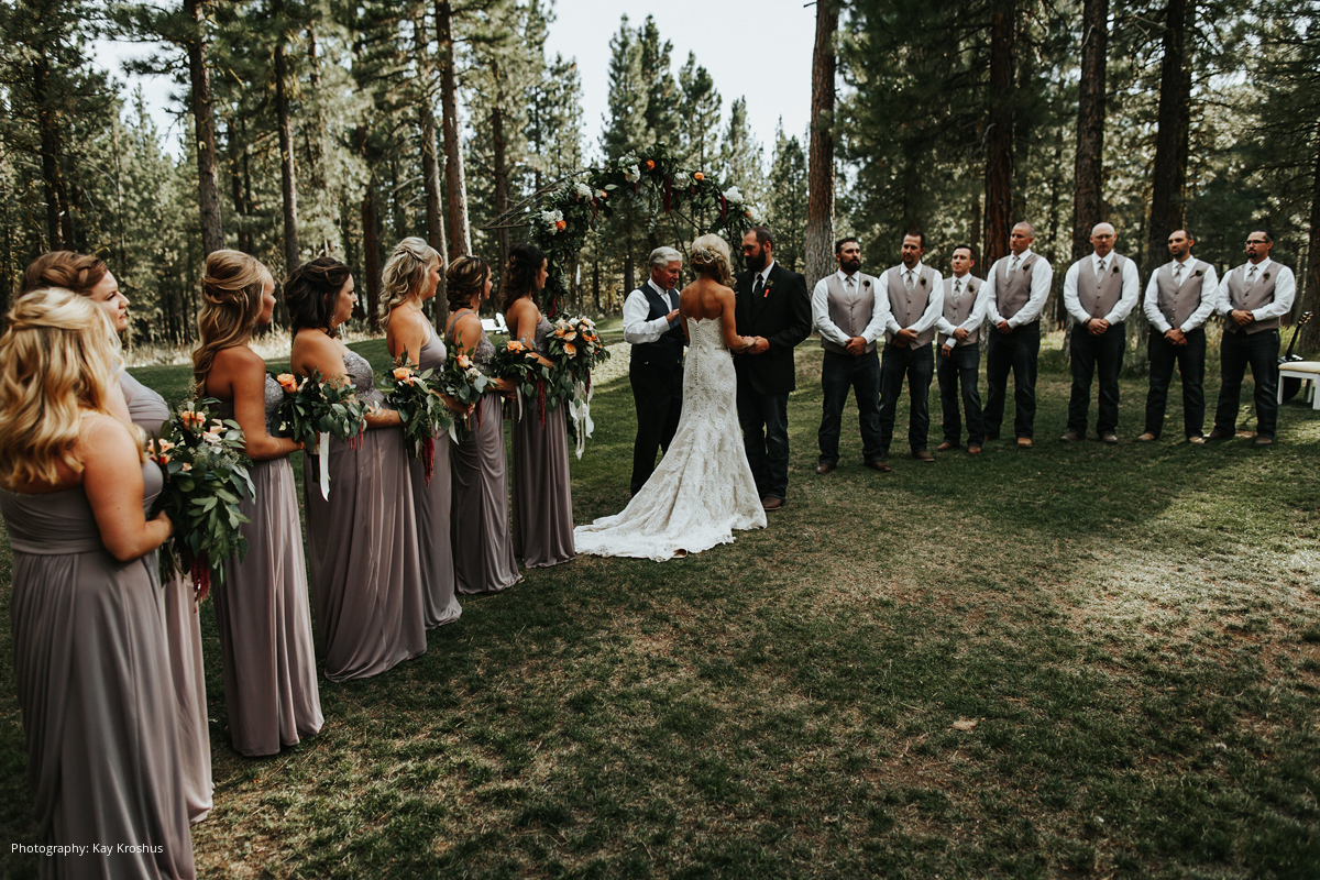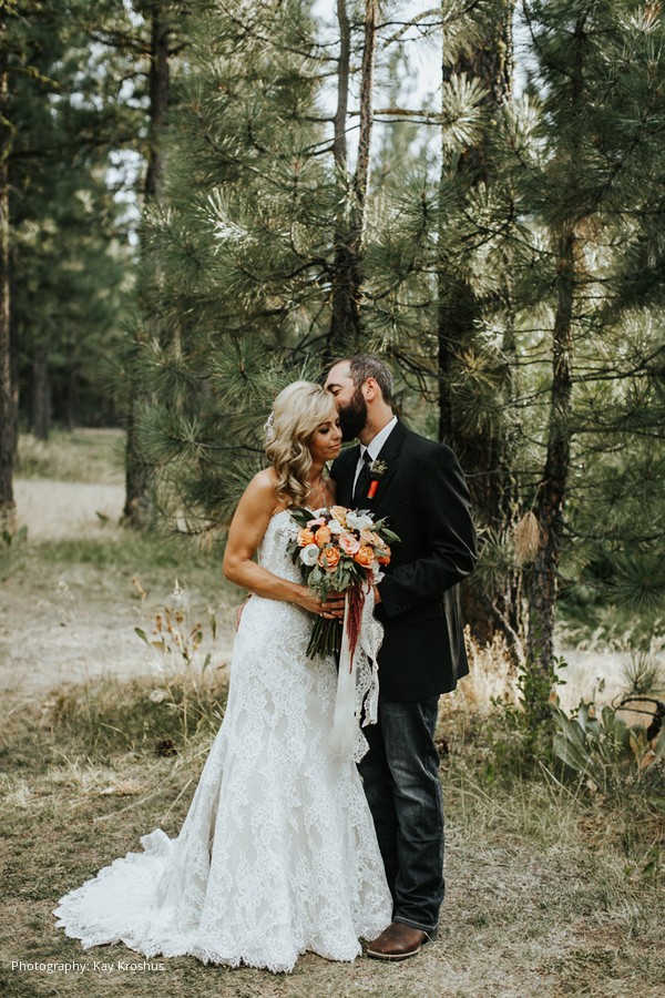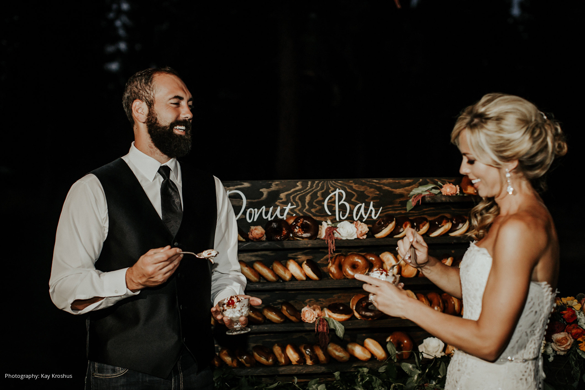 Kelsey and Anthony decided to host their wedding at the Chalet View Lodge, only an hour and a half away from their home. Having envisioned a fairytale mountain wedding, it was the perfect location and venue to bring their ideas to life. “Our wedding planning process was unique since we, combined, have spent 30 years in the food and beverage industry and knew the direction we wanted to go in for our special day,” Anthony explains. “We were fortunate to connect with a great designer and master florist to guide us.”
