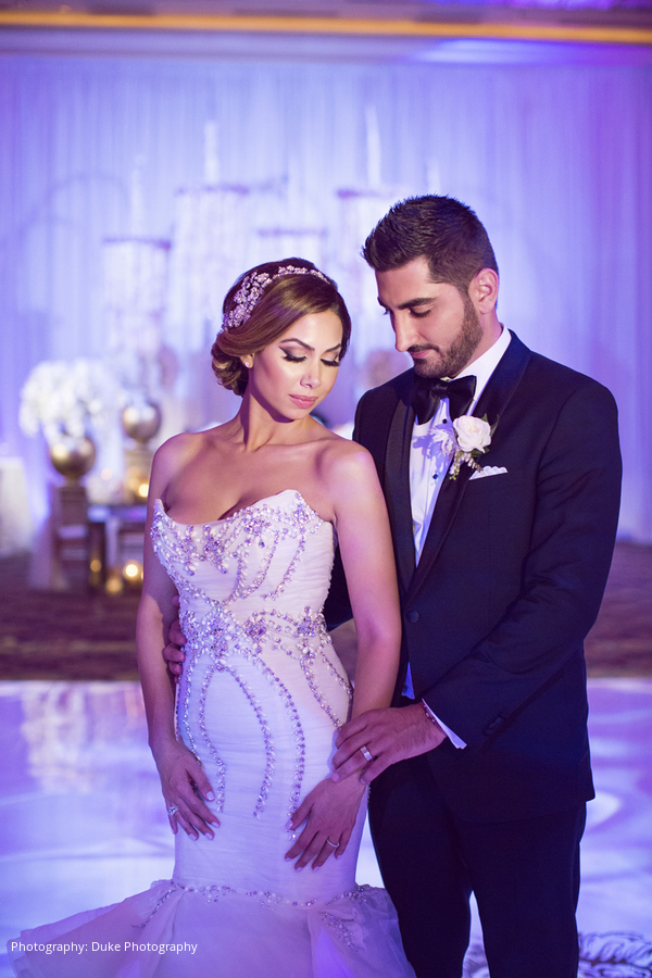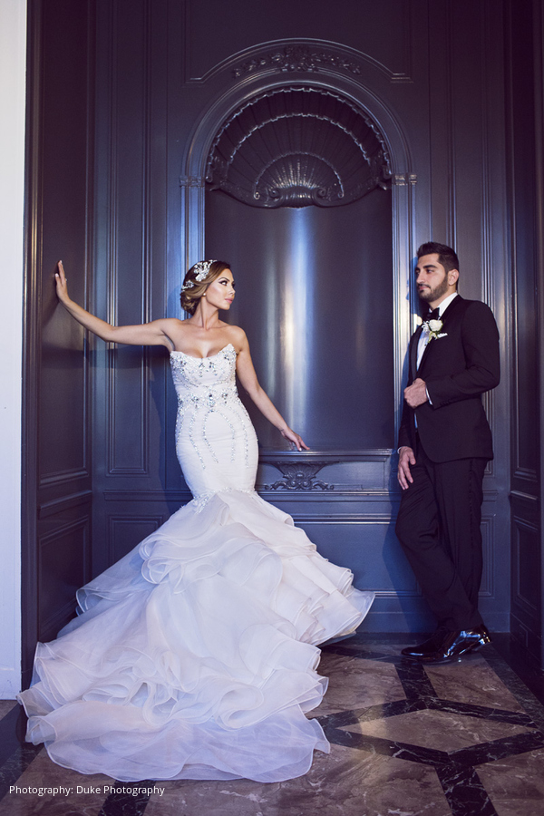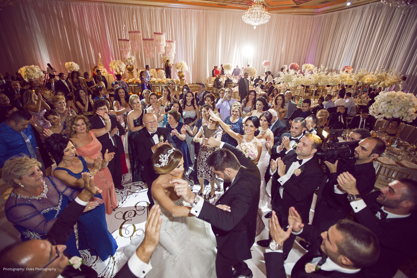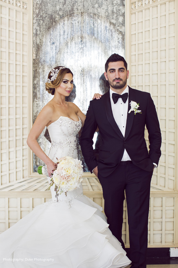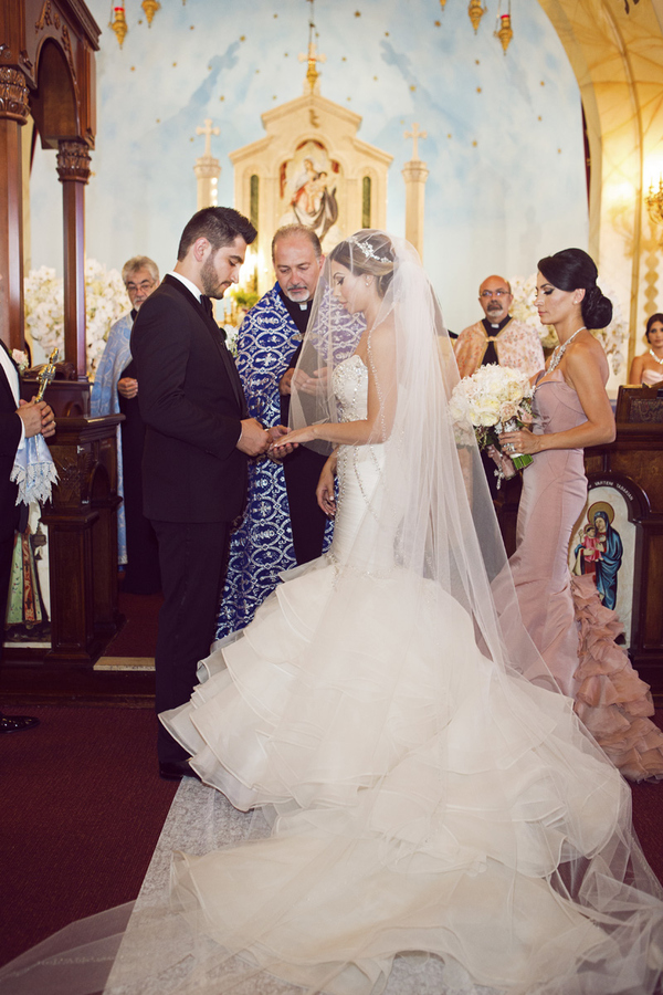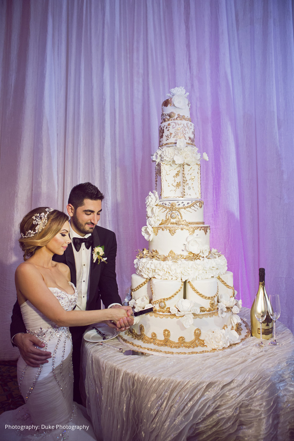 Ceremony Location: St. Mary’s Armenian Church, Glendale, CA; Reception Location: Taglyan Complex, Los Angeles, CA; Event Design and Planner: Fancy That! Events, Burbank, CA; Floral Design: Eddie Zaratsian Lifestyle and Design, Los Angeles, CA; Rentals: Revelry Event Designers, Los Angeles, CA; Stationery: East Six Studio, City, CA; Calligraphy: Calligraphy By Katrina, Los Angeles, CA; Cake: Special Cakes By Ruben, Glendale, CA; Favors: Tamuzza, Vineyards, NJ; Wedding Dress: Ines Di Santo; Bride’s Shoes: Giuseppe Zanotti; Rosary: Maria Elena Bridal Headpieces and Accessories, Miami, FL; Groom’s Attire: Hugo Boss