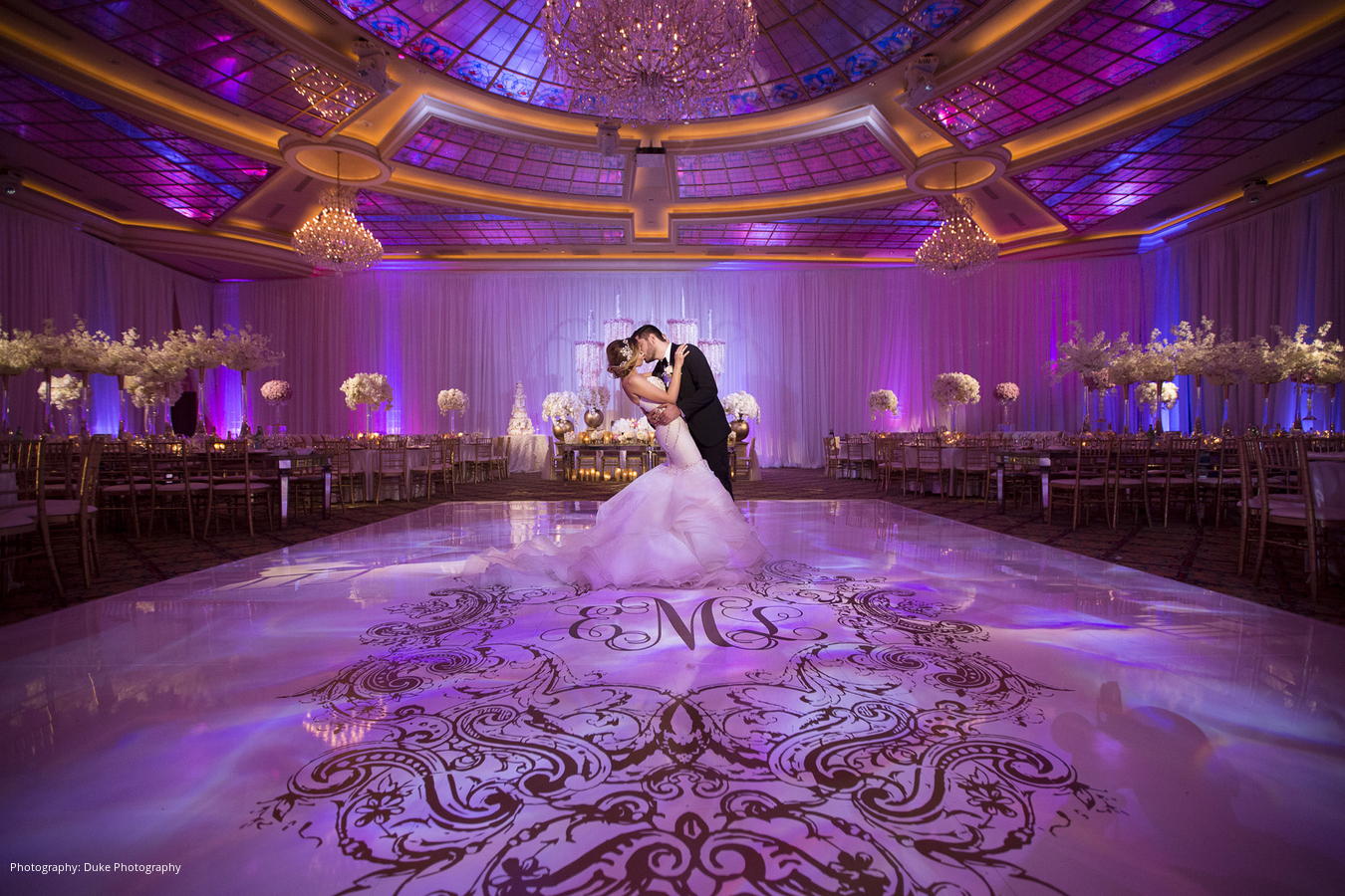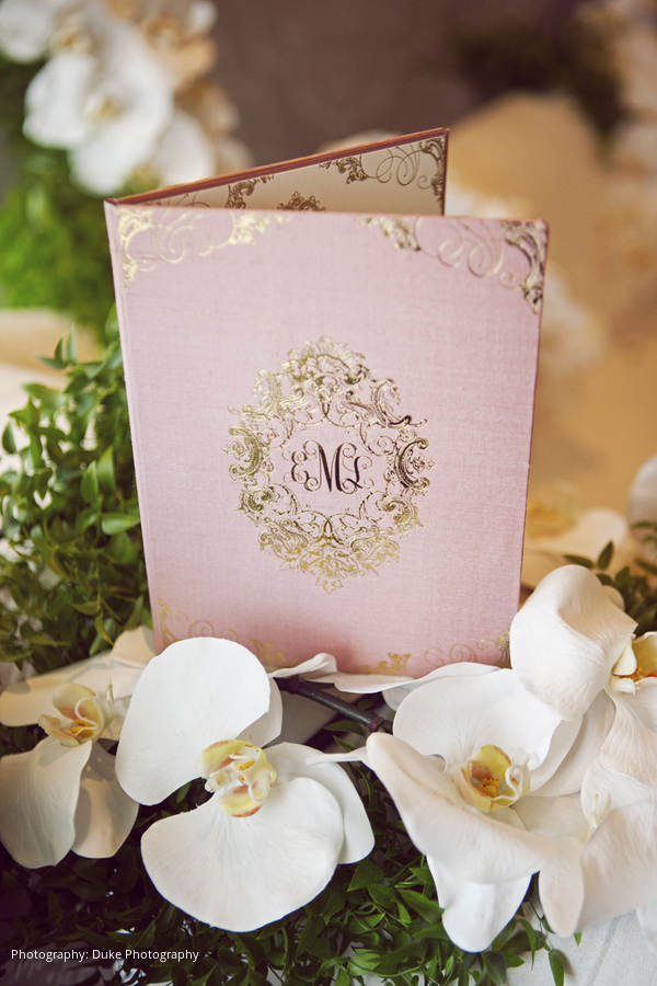 The sweetheart table design was executed perfectly, and blush pink sofas accented the table around the dance floor. A custom monogram was made with the couple’s initials, which was used on the dance floor, the cover of their silk invitations, and on the mini champagne favors for guests. Everything, from the Taglyan Complex’s service to the orchestra, was phenomenal.