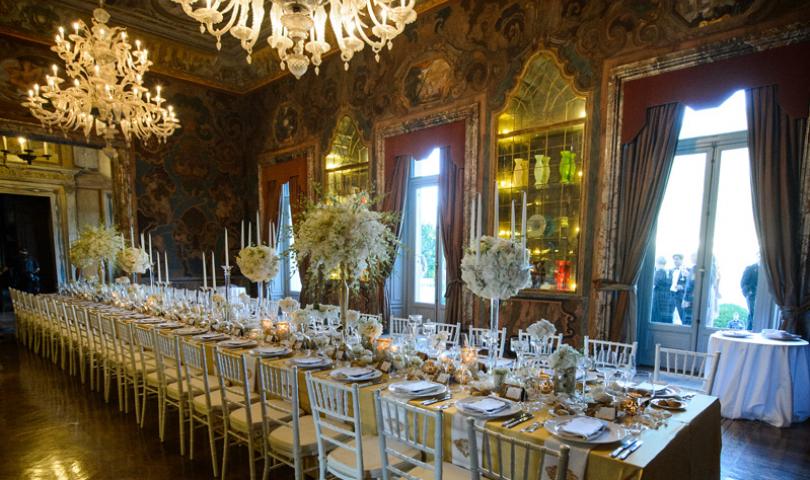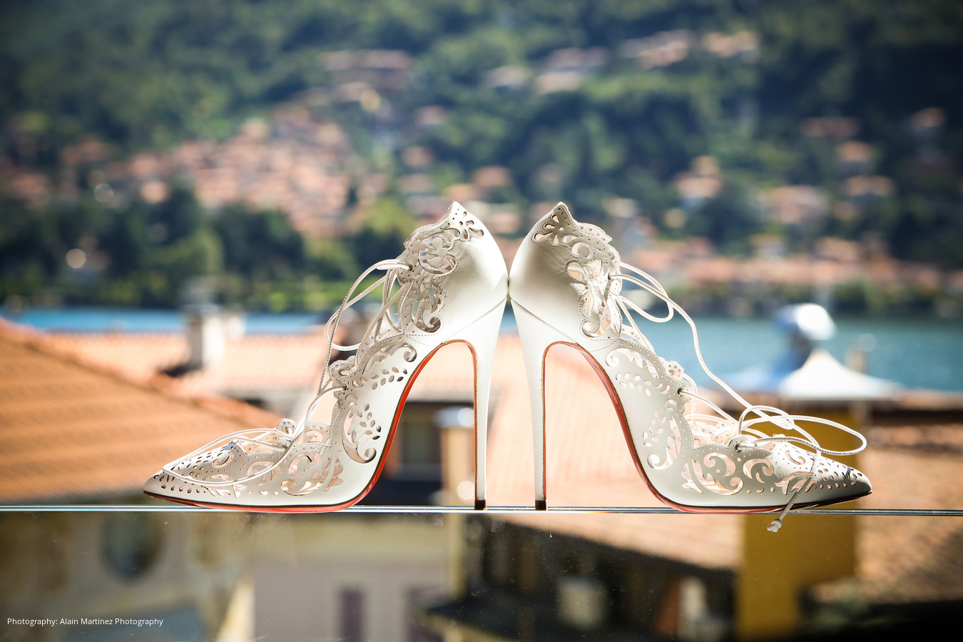 Location: Villa Erba, Lake Como, Italy; Floral Design: Figli dei Fiori, Lake Como, Italy; Caterer and Cake: AFM Banqueting, Milan, Italy; Wedding Dress: Jesus and Antonio Estrada; Veil and Headpieces: Christie Lauren, Manhasset, NY; Bride’s Shoes: Christian Louboutin; Stationery: The Wedding Company,
