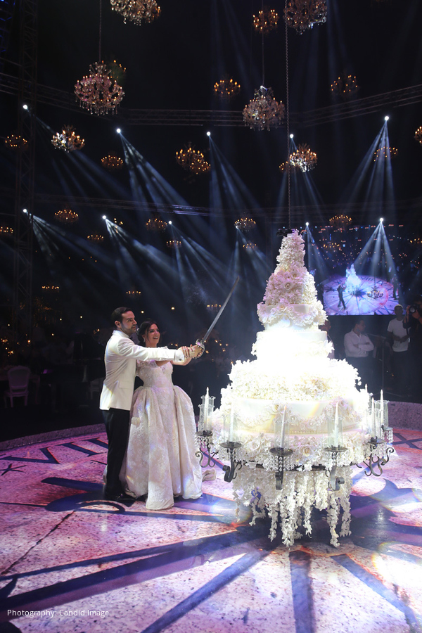 Caterer: Faqra Catering, Beirut, Lebanon; Cake: Nazira Catering, Chnaniir, Lebanon; Rentals: Moodz Events Furniture, Zalka, Lebanon; Lighting: La Production, Mar Takl, Lebanon; Entertainment: 8e Art and Premiere, Abi Saad, Lebanon; Wedding Dress: Jean Louis Sabaji; Groom’s Attire: Nemer Saade