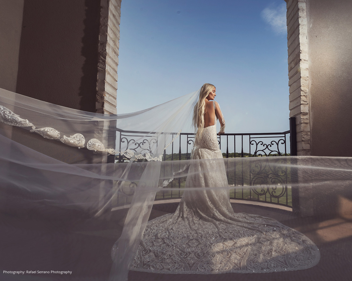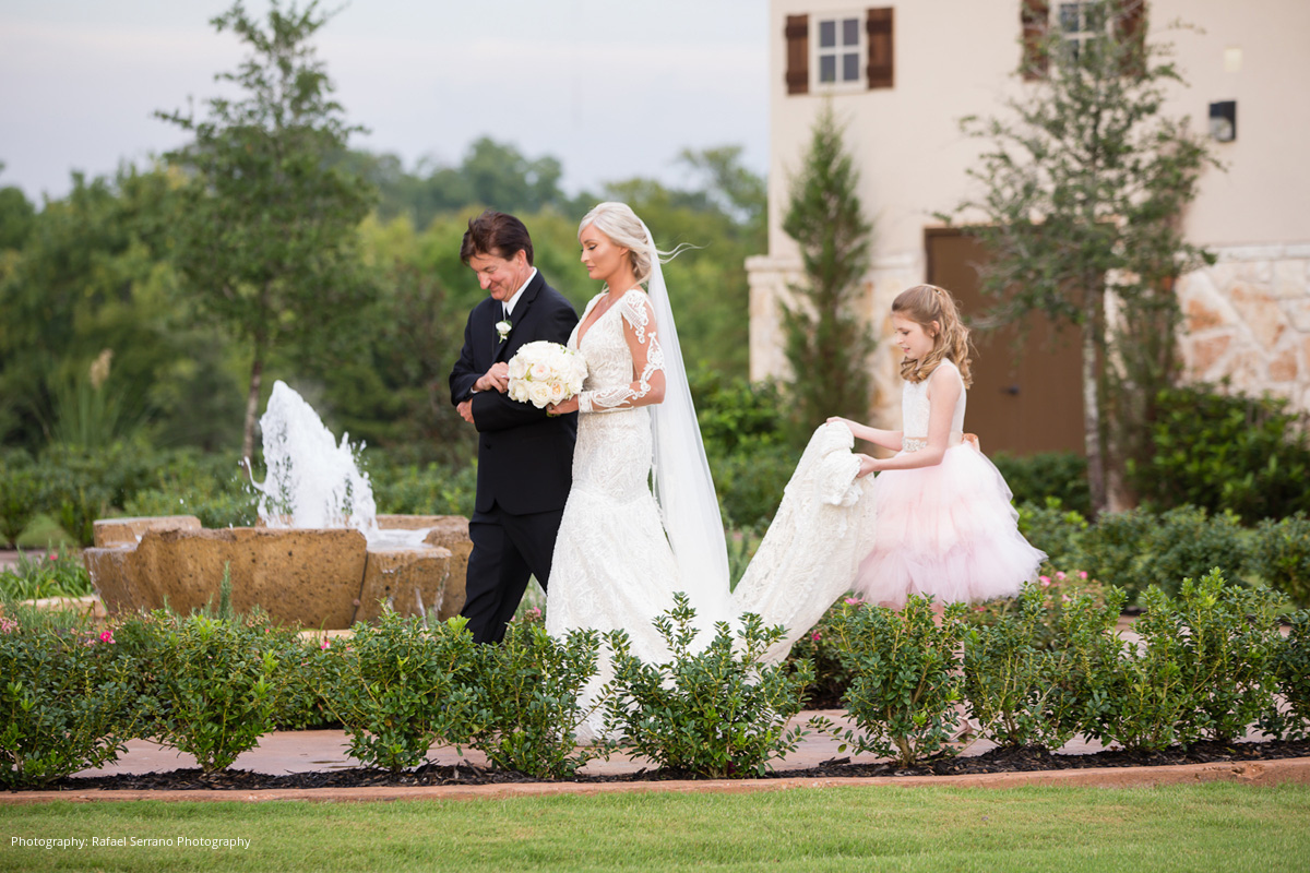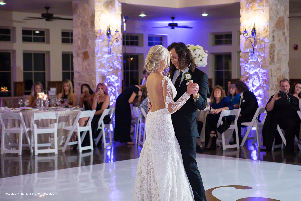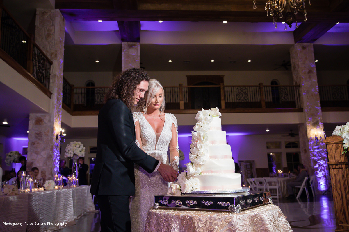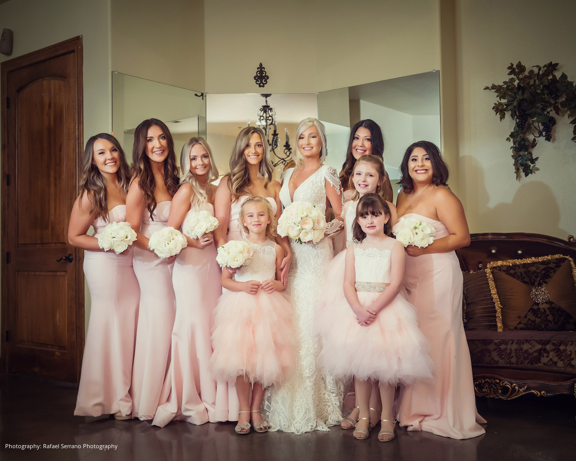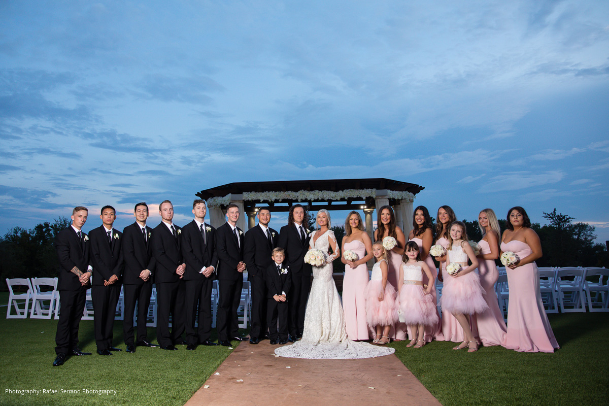 The couple’s venue was a Tuscan inspired mansion where guests were seated for dinner and the newlyweds’ grand entrance. Brittani and Kostas shared their first dance to Lana Del Rey’s “Young & Beautiful,” performed by Serenata Strings and Harmland Visions. Following the mother-son and father-daughter dances, a traditional Greek dinner was served. Other wedding details included a champagne tower and cigar lounge.