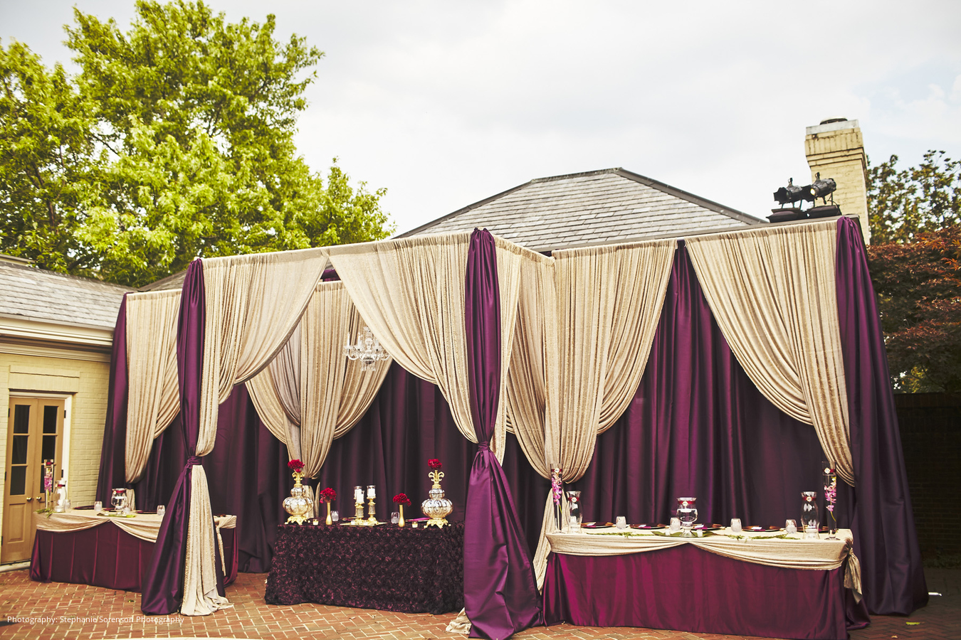 Since the entire wedding was taking place outdoors, the biggest concern was how Nashville’s transitioning fall weather would hold up. A downpour actually occurred about two hours before the wedding started; but it stopped just in time for the festivities to begin, and the rain helped to cool down the uncharacteristically warm temperature. The result? A celebratory night with perfect weather.