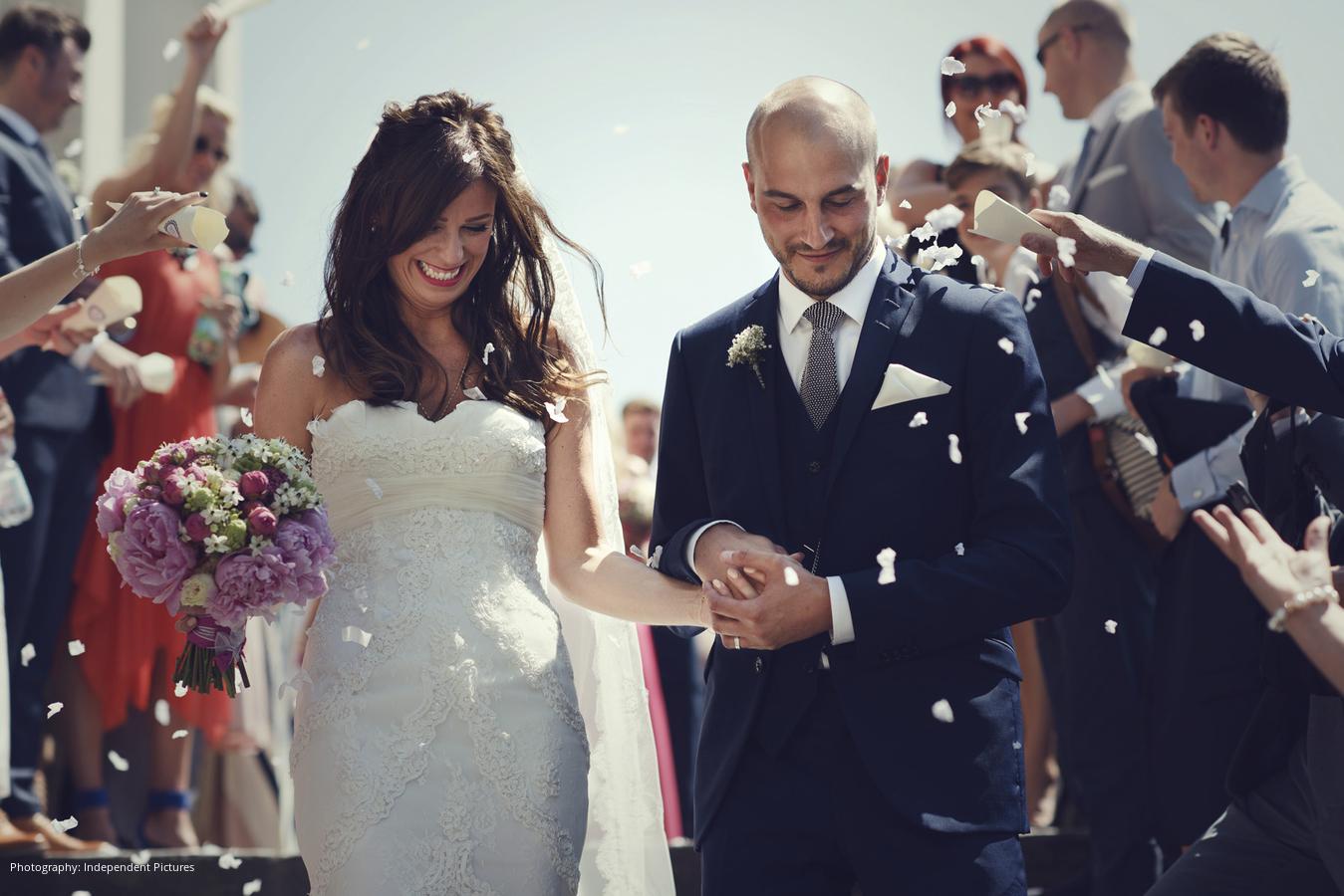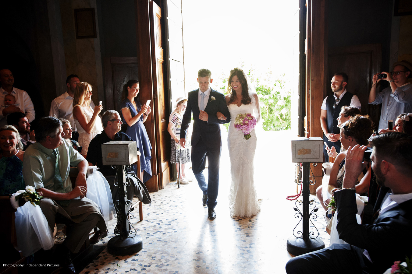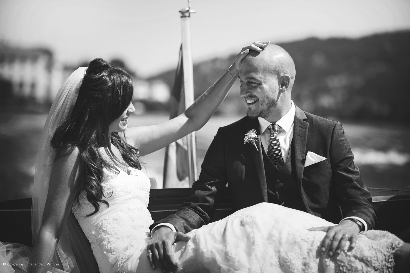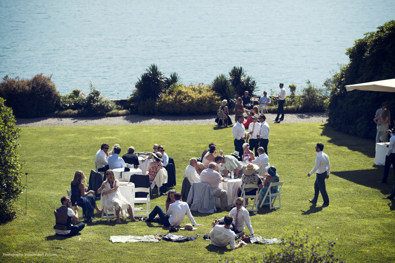 Having traveled to Italy many times in the past, Kelly and Mark knew it would be the perfect place for a destination wedding. Guests arrived via boat to a church on Isola Bella, which set the tone for a spectacular series of events. For the aperitif and evening music, singer and X-Factor finalist Nikitta Angus was flown in, along with Andrea, a guitarist–both, whom Mark had met at a London bar. With guests seated on the grass next to the lake, it was like a private music festival with a relaxing and joyful ambiance.