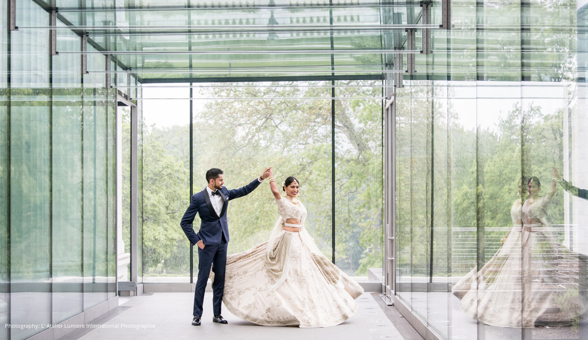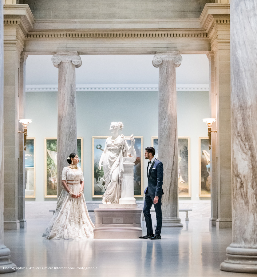Since Ravali and Arpan are both from Ohio, they knew they wanted to get married there, where so many of their friends and family are. After numerous site visits, they found the Cleveland Museum of Art. The couple noted, “The museum was the perfect blend of our Indian heritage and roots in Ohio, with its beaming glass atrium and rich art collection – we knew we had found our venue!” They also asked permission to open the Southeast Asian exhibit during the reception for their guests to explore, which was granted for the first time.