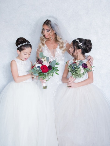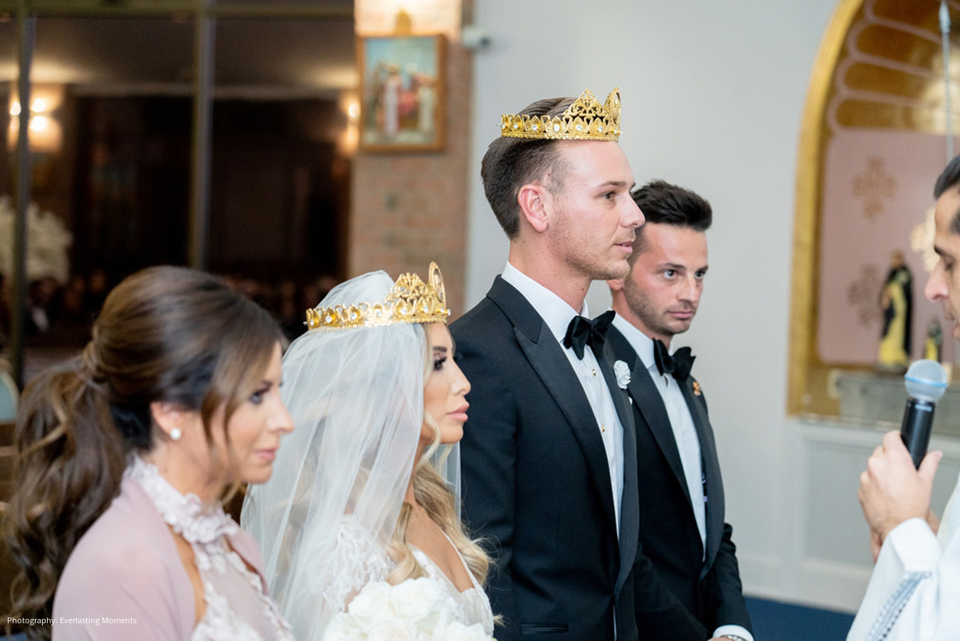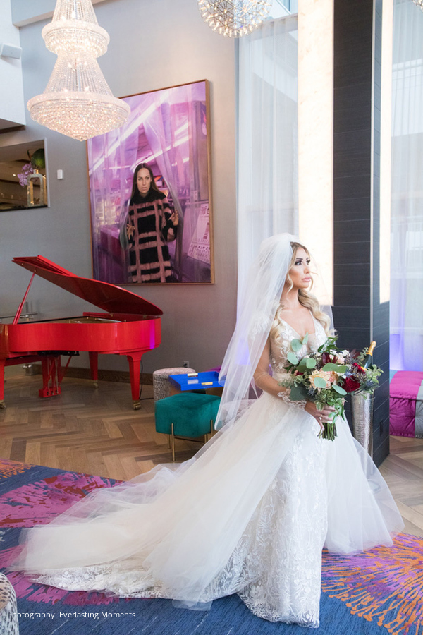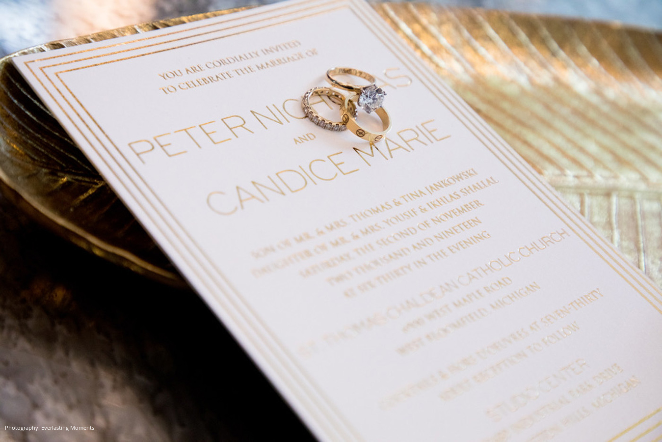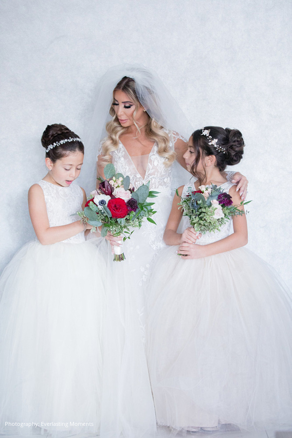 Ceremony Location: St. Thomas Chaldean Church, West Bloomfield, MI; Reception Location: Studio Center Farmington Hills, MI; Planning, Event & Floral Design: Top That Table, West Bloomfield, MI; Wedding Dresses: Monique Lhuillier & Ines di Santo; Bridal Salon: Roma Sposa