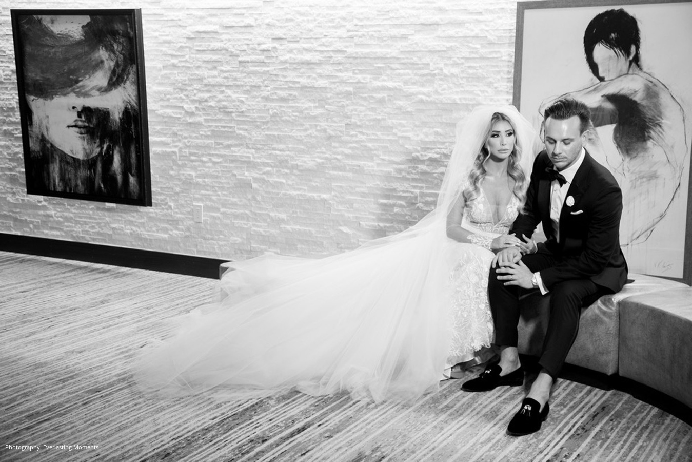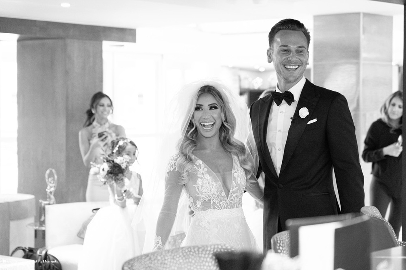 “Meeting Peter is a crazy story that still puts us in awe today,” says Candice Shallal, describing her first encounter with Peter Jankowski. “I was on a girls’ trip in Miami and Peter also happened to be in Miami visiting his cousins. He actually was supposed to be there a month earlier, but due to his grandmother’s passing, his trip was delayed. We both were at a waterfront restaurant/bar named Kiki on the River.