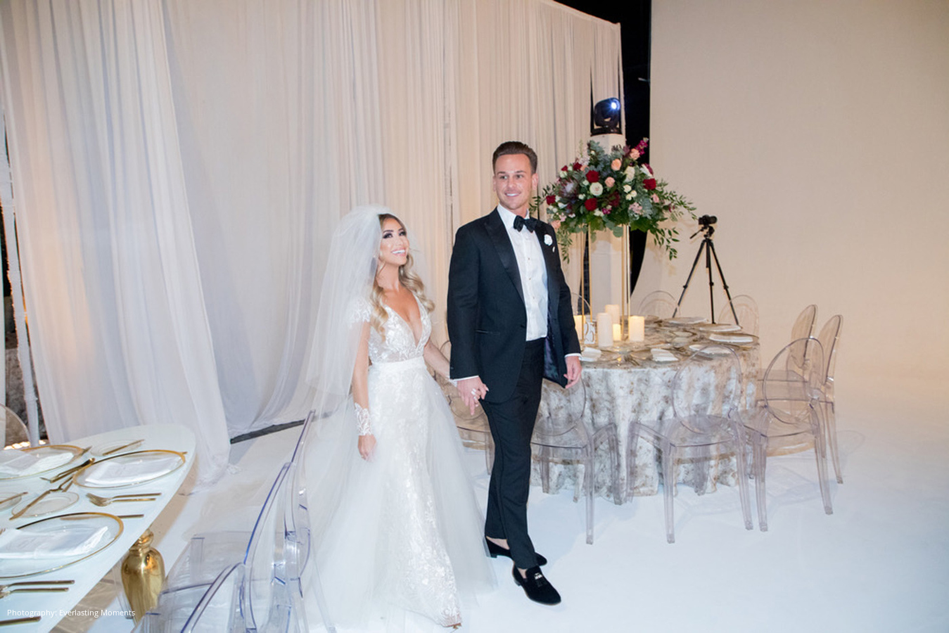 With Candice coming from a large Middle Eastern family, weddings with 500-600 guests are pretty standard. Still, she and Peter wanted their wedding to feel different from “the norm,” and focused on their vision of throwing a true party. After finding a movie studio that provided the perfect blank canvas for a wedding venue, their talented team of wedding vendors were able to transform the studio into the perfect celebration space.